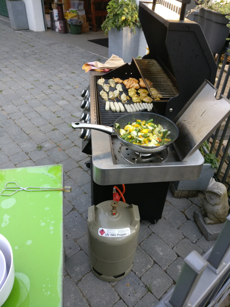 Ankunft in der Eifel um 15:00 Uhr. Für diesen Tag genug gefahren, der Rest des Tages war dann Entspannung: Ein wenig im Schatten sitzen, mit sehr angenehmer Gesellschaft, ein paar weitere Erfrischungsgetränke, dann wurde gegrillt und ich durfte nur beim Essen helfen 😉 , nicht schlimm…