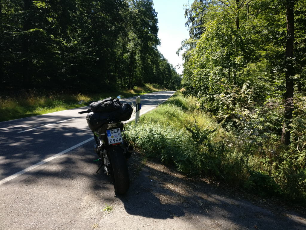 Es war um die Zeit schon recht warm, also hab ich mit dem rechten Drehgriff mal ein wenig Wind gemacht und auf den schattigen Waldwegen ließ es sich angenehm fahren.