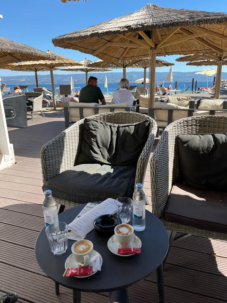 Schnell eingecheckt, die Sachen aufs Zimmer gebracht und nach einer kurzen Erfrischung ab an den Strand. Hier teilten wir uns dann auf. Während Claus und Achim ins Wasser und in die Sonne wollten, zogen Matze und ich es vor, ein kühles Getränk im Schatten zu genießen.