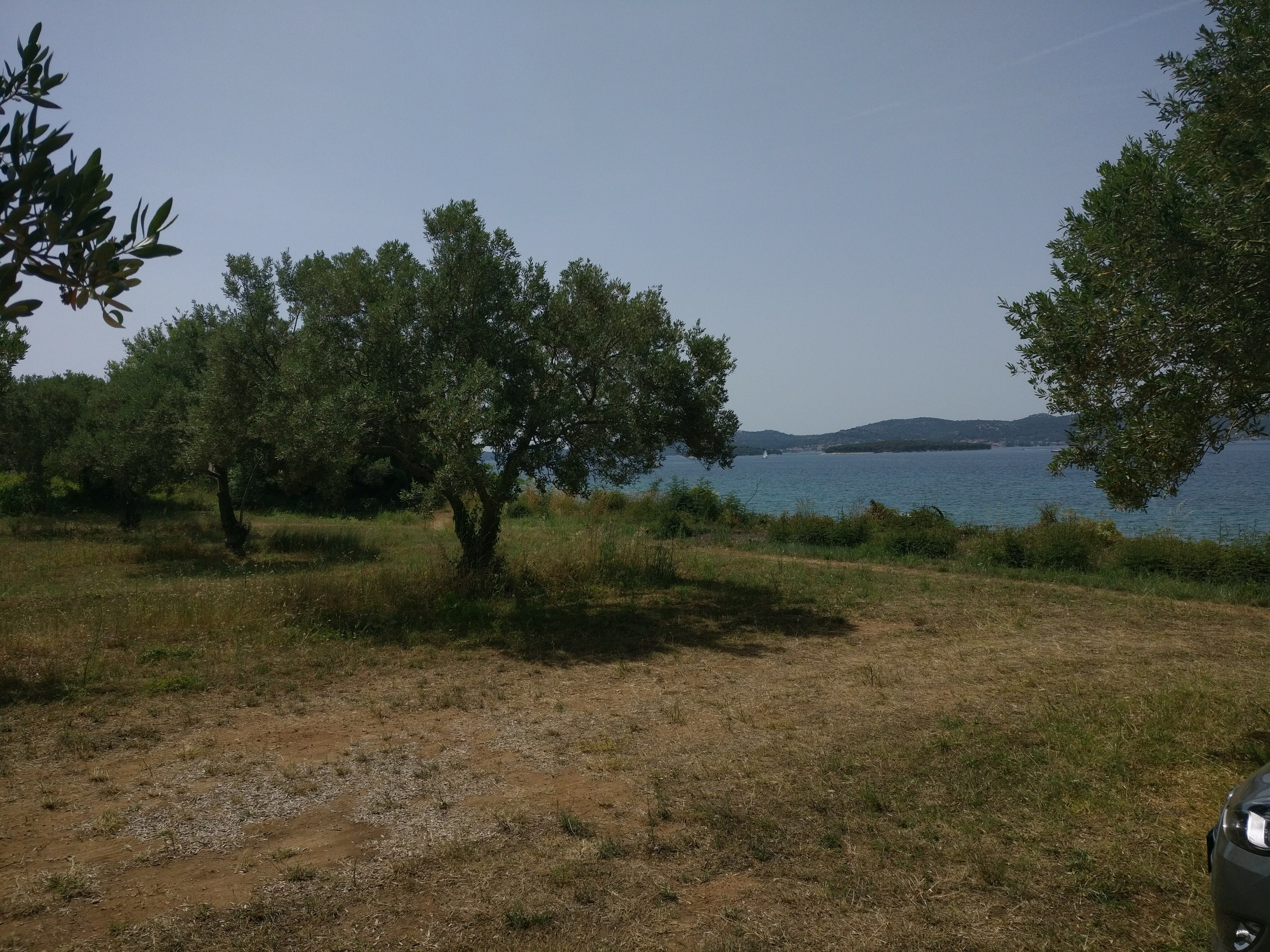 Gestern war mit Omis der südlichste Punkt unserer Tour erreicht, streng genommen sind wir ab heute schon auf dem Rückweg. Mit etwas über 300 km lag heute eine der längsten Etappen vor uns und beim Start heute morgen um 9:30 Uhr war es schon wieder richtig warm. Wir mussten also irgendwie nach Senj kommen und ich hatte mich schon ein wenig darauf eingestellt, dass es evtl. nicht ganz so toll werden würde. Der erste Teil bestätigte auch meine ‚Befürchtungen‘. Es ging durch viele Ortschaften, die meiste Zeit geradeaus und es war sehr warm. War schon echt anstrengend… Dann bog Tourguide Achim auf die Nebenstrecken ab und es wurde schon ein bißchen besser. Wir machten einen kurzen Zwischenstopp auf dem Campingplatz, auf dem Matze und Achim im August Urlaub mit der Familie machen wollen. Ist ja mal nicht schlecht, wenn man sich das vorher schon mal anschauen kann. So konnten wir eine kleine Pause im Schatten von Olivenbäumen machen.