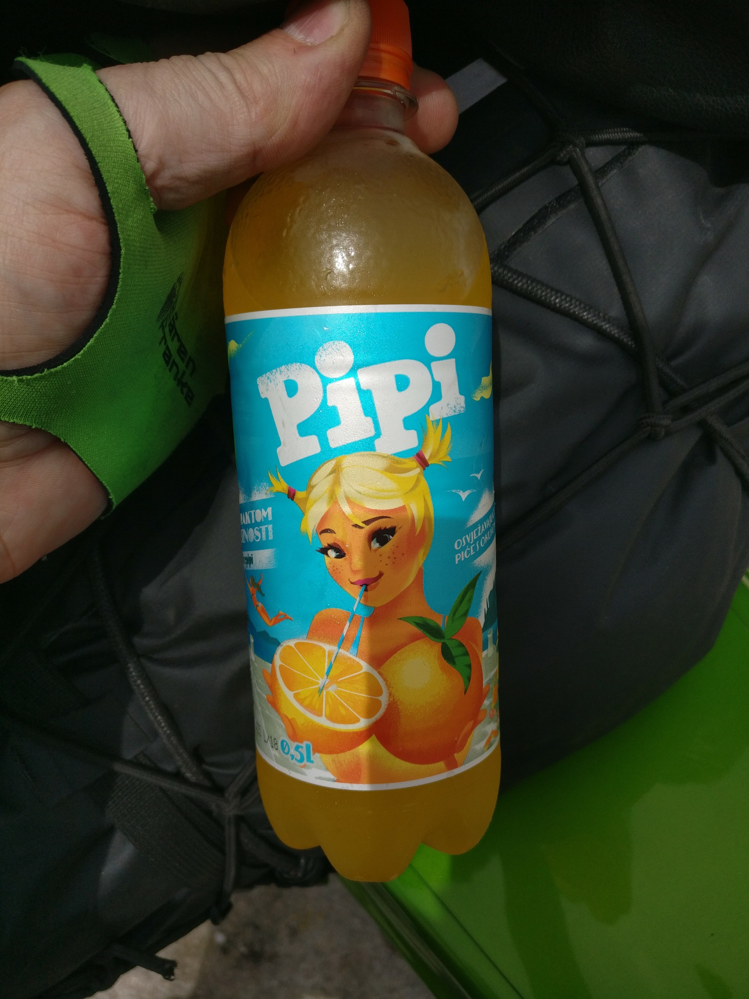 Auf meinem Navi stand dann kurze Zeit später lapidar: ‚Fährt auf 8‘. Das klingt erst mal nicht besonders aufregend. Aber was dann abging, war unglaublich. Ich vermutete später, dass mehrere begeisterte Motorradfahrer im kroatischen Straßenbauamt zusammen gesessen haben und sich diese Straße ausgedacht haben, damit sie mal richtig Spaß haben können. Die Küstenstraße 8 ist wohl eine der schönsten Strecken. Das erste Warnschild für Motorradfahrer, welches auf erhöhtes Sturzrisiko auf den nächsten 28 km hinweist, ließ nur Gutes erwarten 😉 . Jetzt ging es richtig ab, rechts der Straße steil aufragender Fels und auf der linken Seite das Meer. Und dazwischen eine Motorradstrecke vom Allerfeinsten! Allerbester Asphalt und Kurve an Kurve an Kurve. Dazwischen ein paar Spitzkehren und dazu kaum Verkehr. Die Müdigkeit war wie weggeblasen und die Hitze mit einem Mal völlig uninteressant. Am Ende dieses wunderbaren Straßenabschnitts gab es beim Tankstop nur ein großes Grinsen bei allen. Und eine Erfrischung mit ausgefallenem Namen.