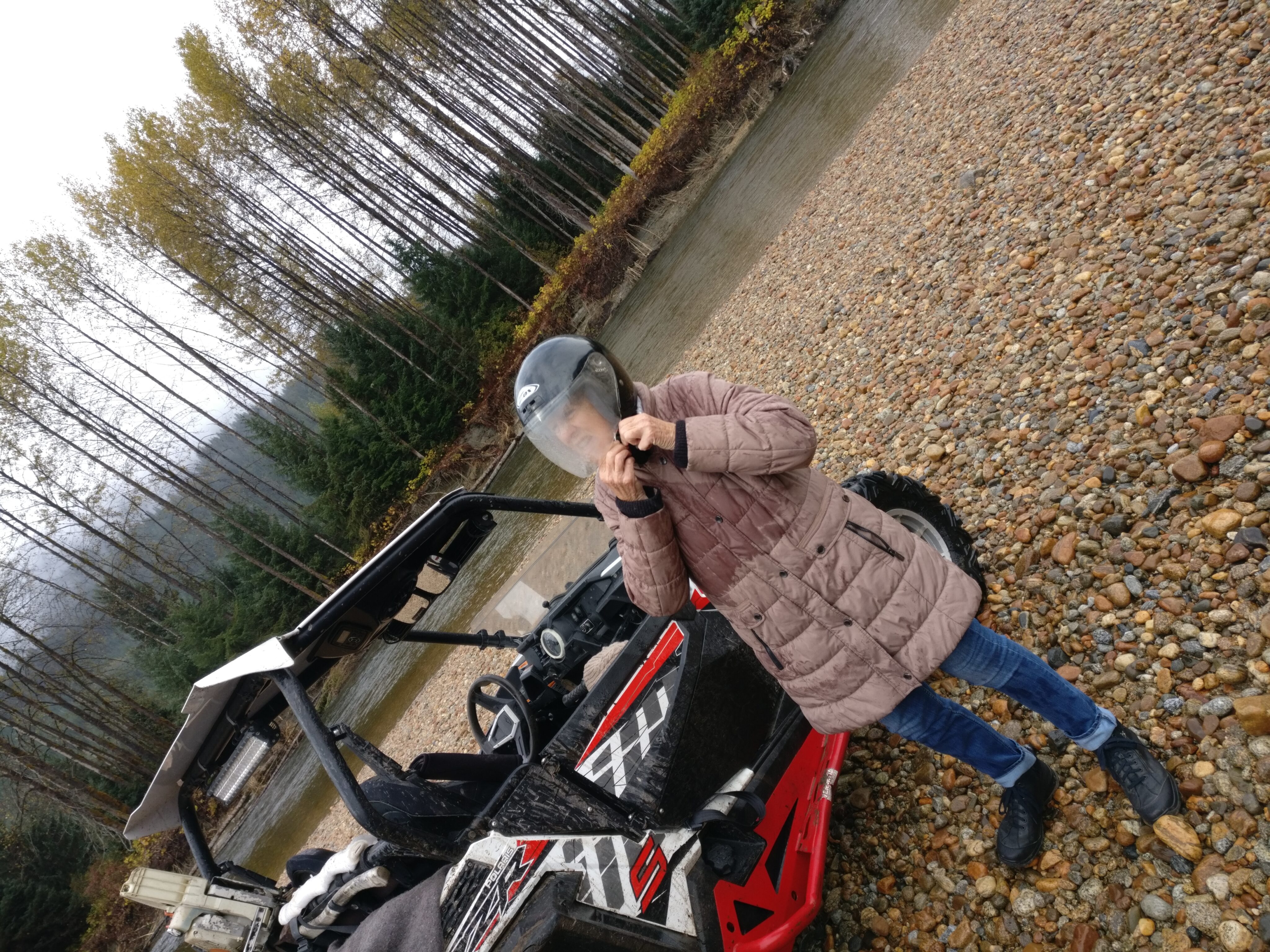 Now it got serious: put on the crash helmet, tighten the chin strap, fold down the visor. My heart was pounding hard. I was given final instructions. Keep your hands on the handholds at all times, never stick your head or right arm out the side of the vehicle. „And if you get sick, you have to yell at Blake to stop,“ Lea gave me. Then she jumped into the other vehicle with her dad and the engines were already howling.
