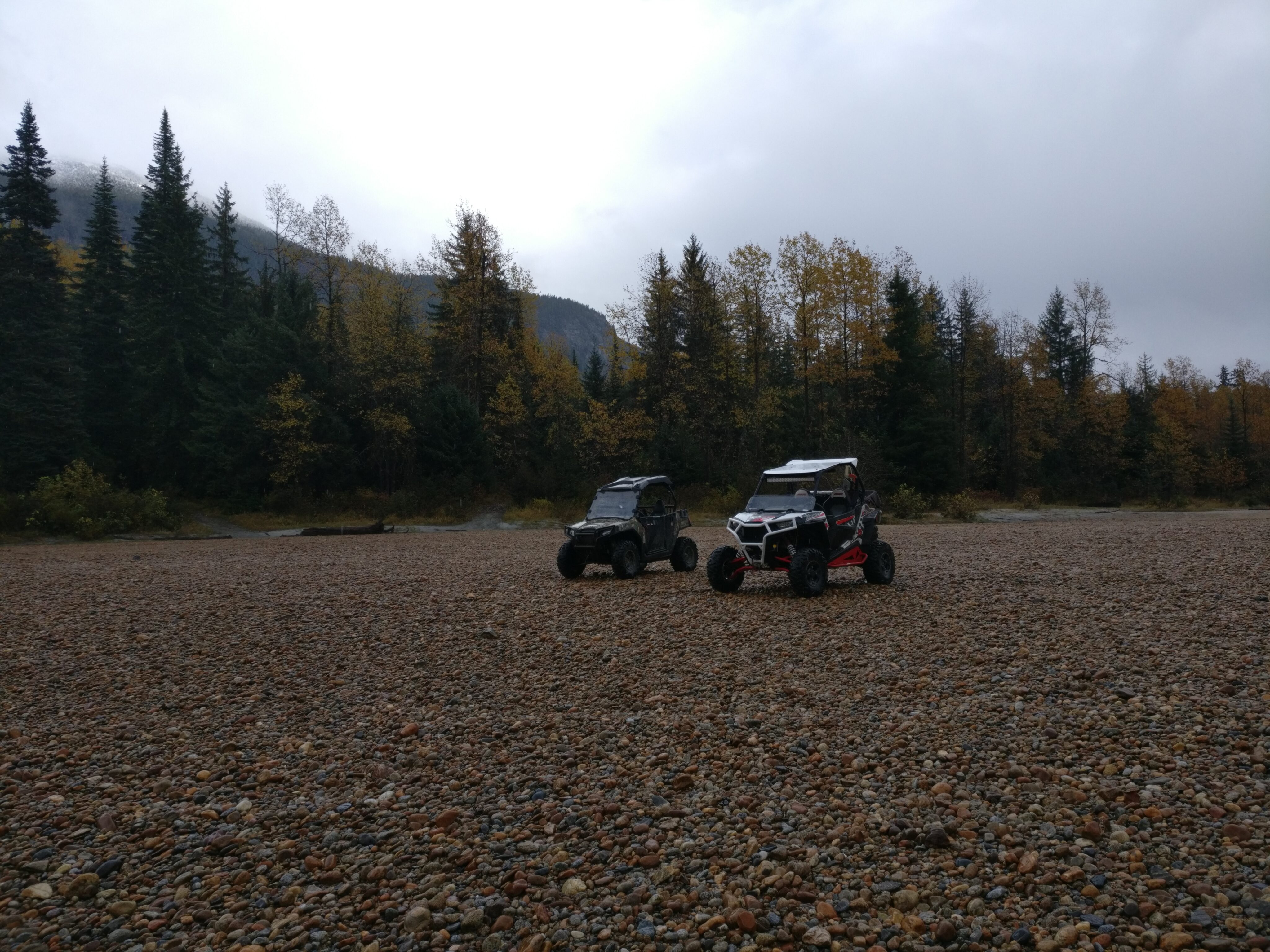 SXS are open all around and have only a small square fixed roof. While there was a windshield in the second vehicle, ours was only half-height. The driving wind flew around my ears from all sides. Suddenly I was glad I had a sturdy crash helmet on my head. Blake turned a knob. Shortly after, warm air rushed to my feet. What a relief! I gave him a grateful look, and he raised his thumb with a grin. The road, which was only stony at first, now became increasingly uneven. We drove through ditches, over tree roots and trunks, over stones and boulders and were thoroughly shaken. At times we got into such an inclined position that I expected to tip over in the next moment. Now I realized why the SXS has all-wheel drive and all four wheels are individually suspended. It was an incredibly wild ride. It wasn’t until we stopped on the rocky banks of the Exstew River that I was able to breathe normally again and let the tension out of my body a bit.