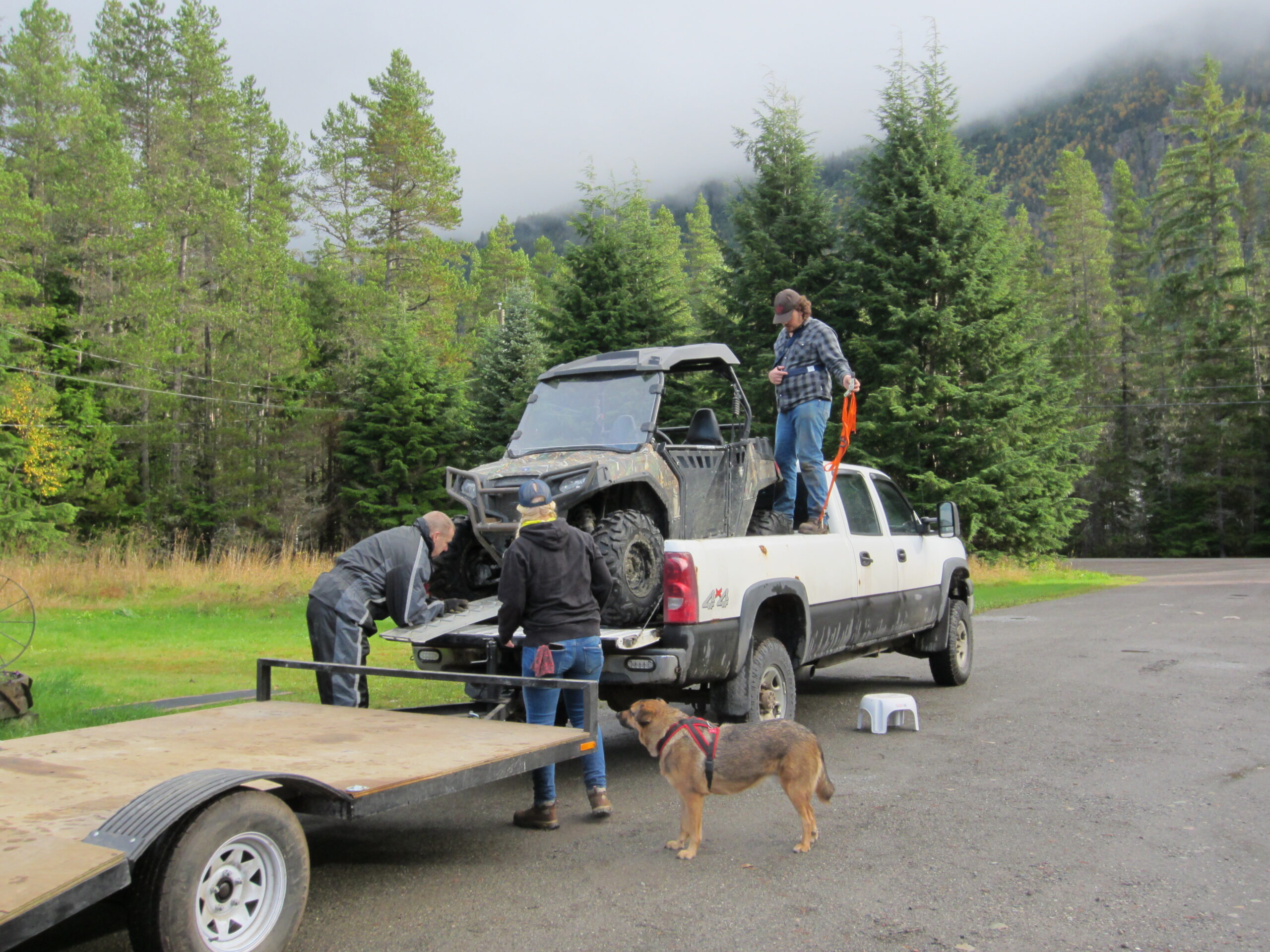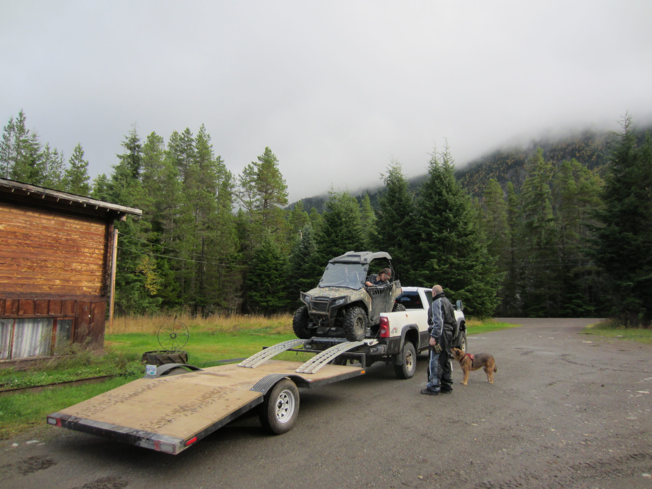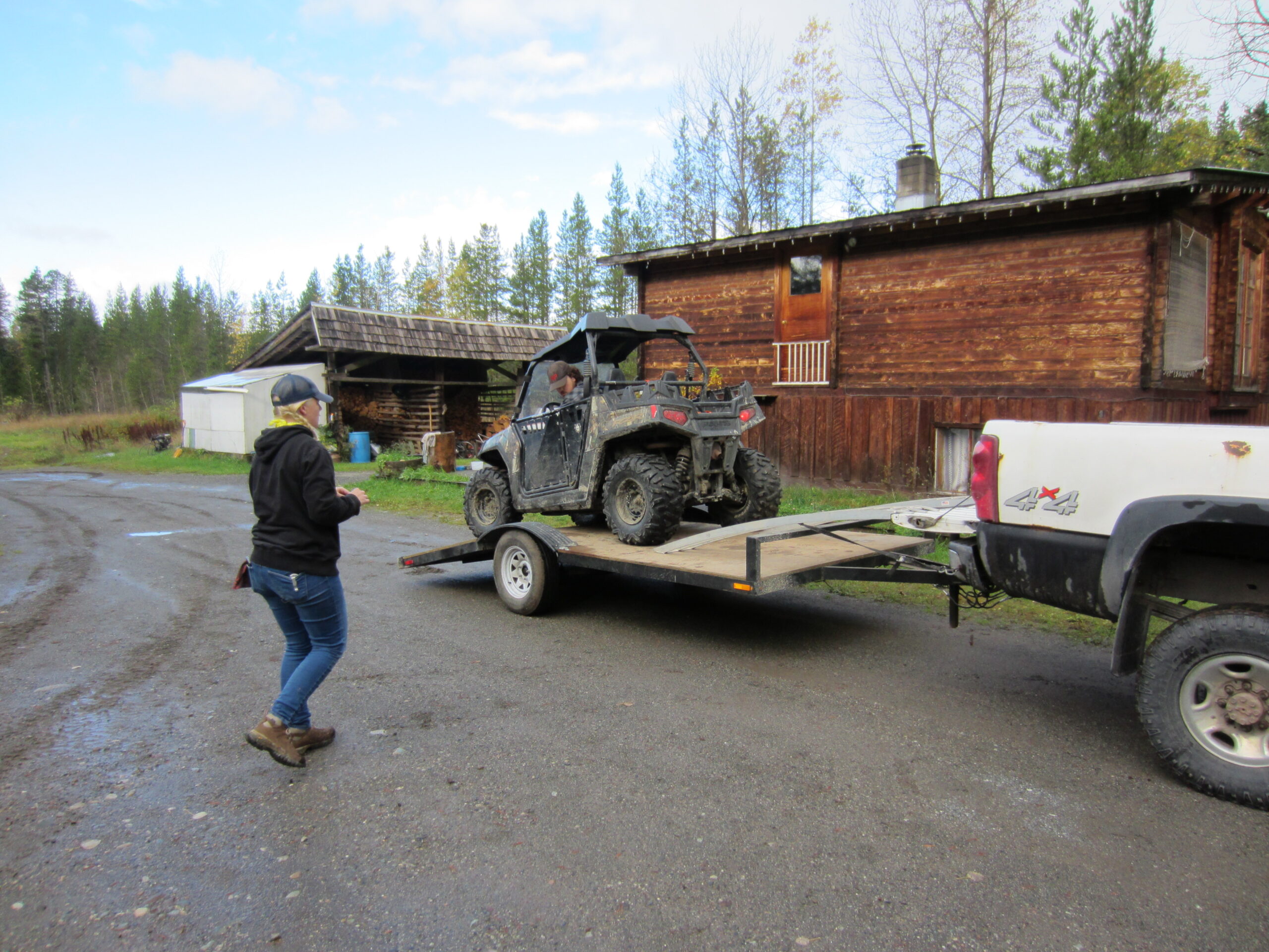 Nun ging es Schlag auf Schlag. Ein flacher Anhänger wurde an den Pick-up gekoppelt.