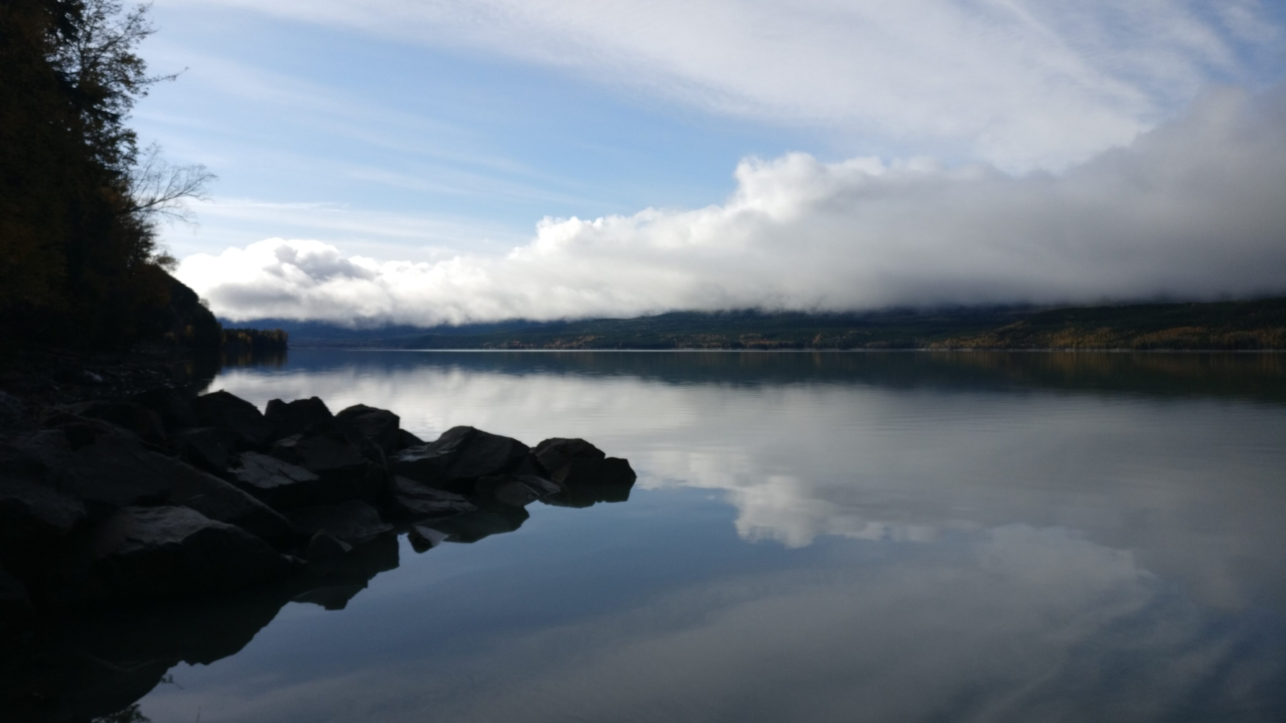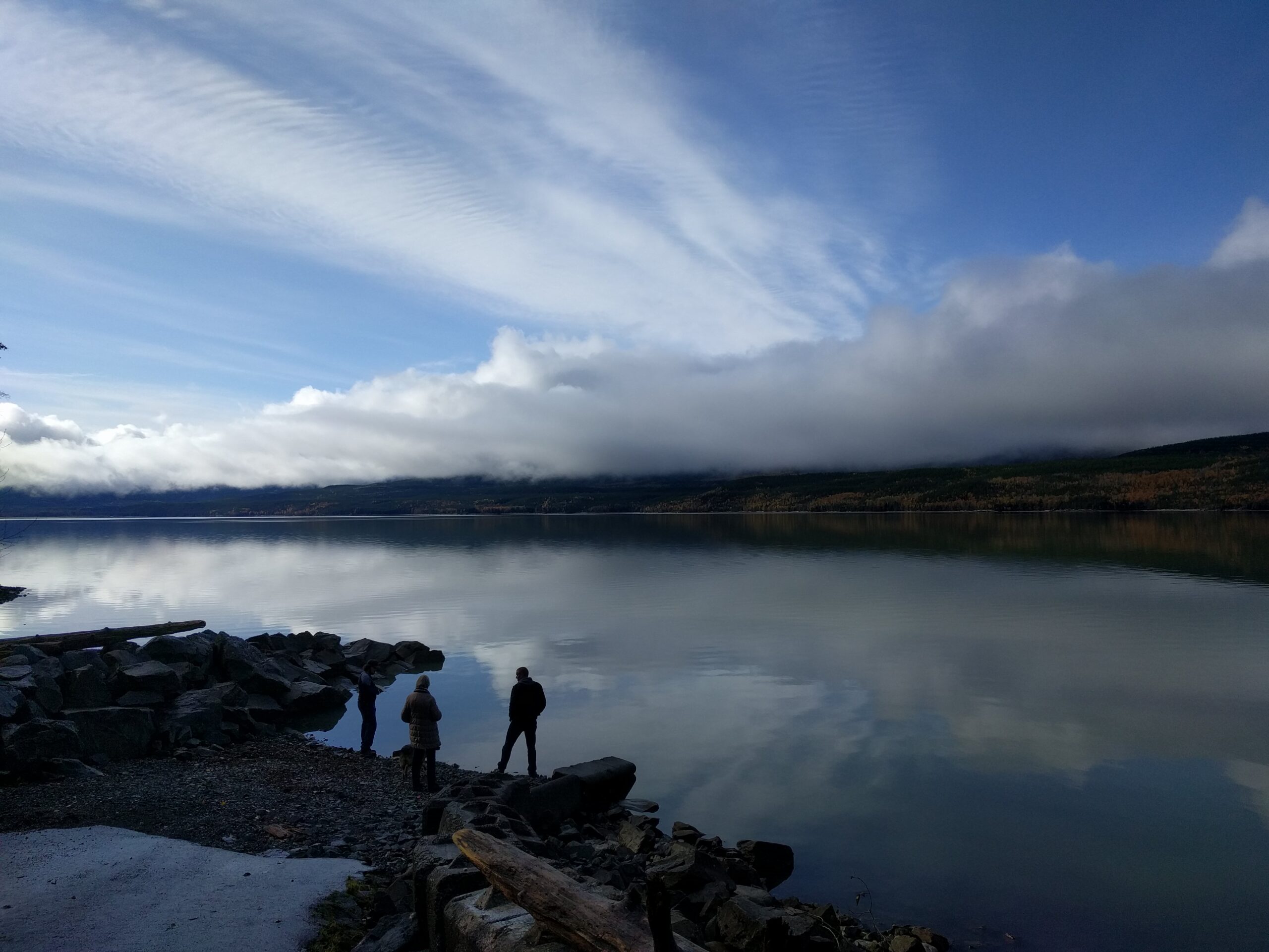 Der neue Tag begann mit einer langen Fahrt im Truck gen Norden. Erster Stop am Kalum Lake, ein 1.910 ha großer See. Wir kletterten auf die Felsen am Ufer, um den herrlichen Blick auf die glasklare Wasserfläche zu genießen, in der sich der Himmel aquamarinblau spiegelte.