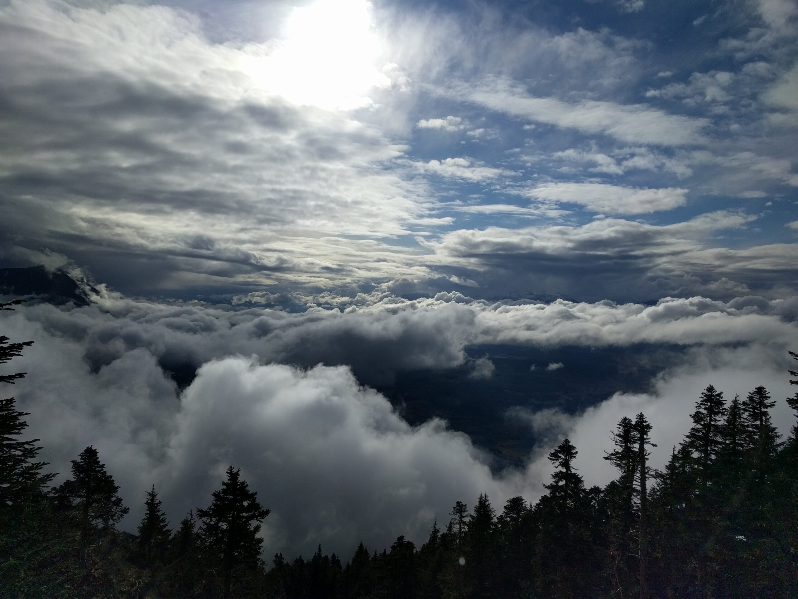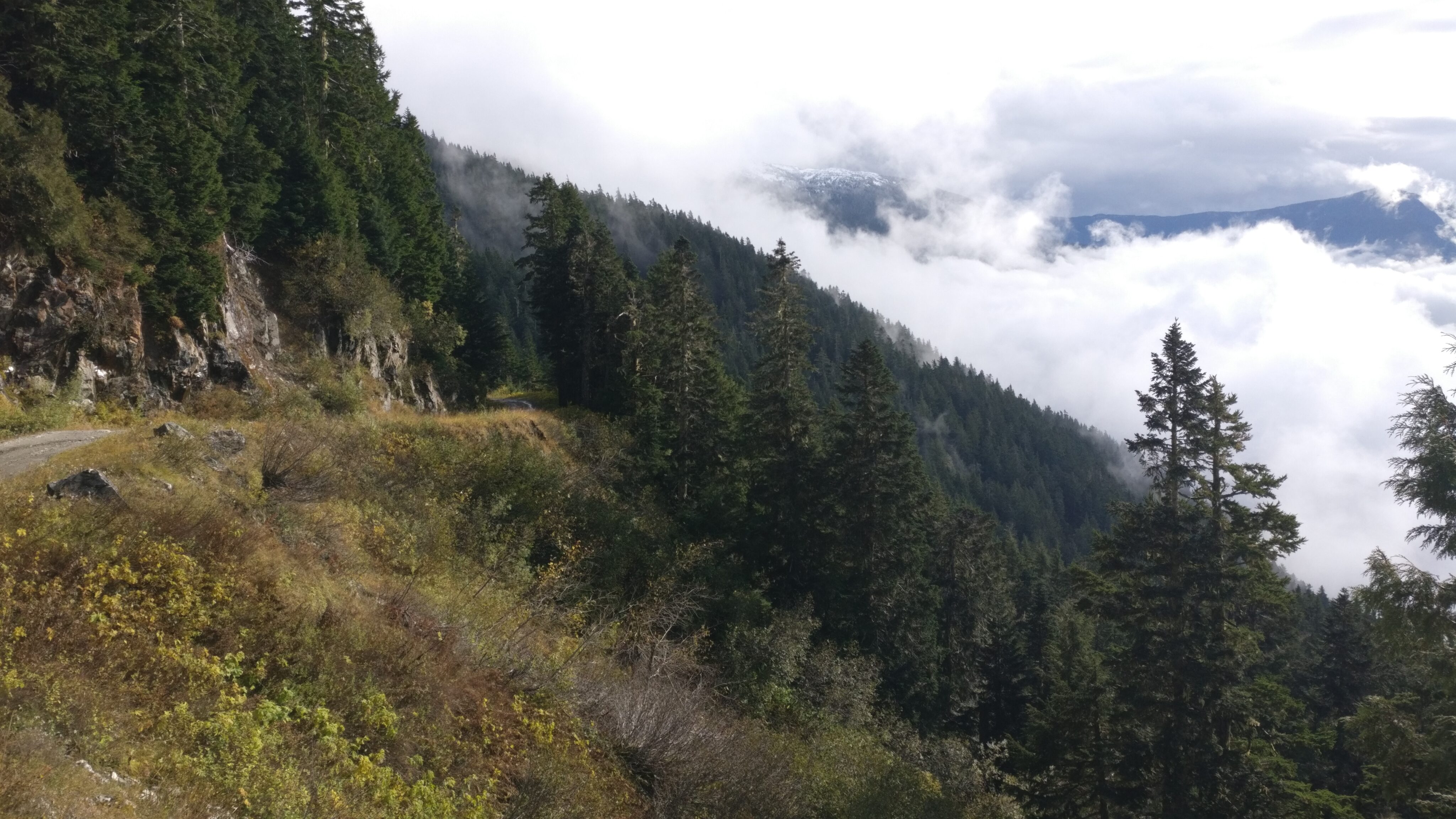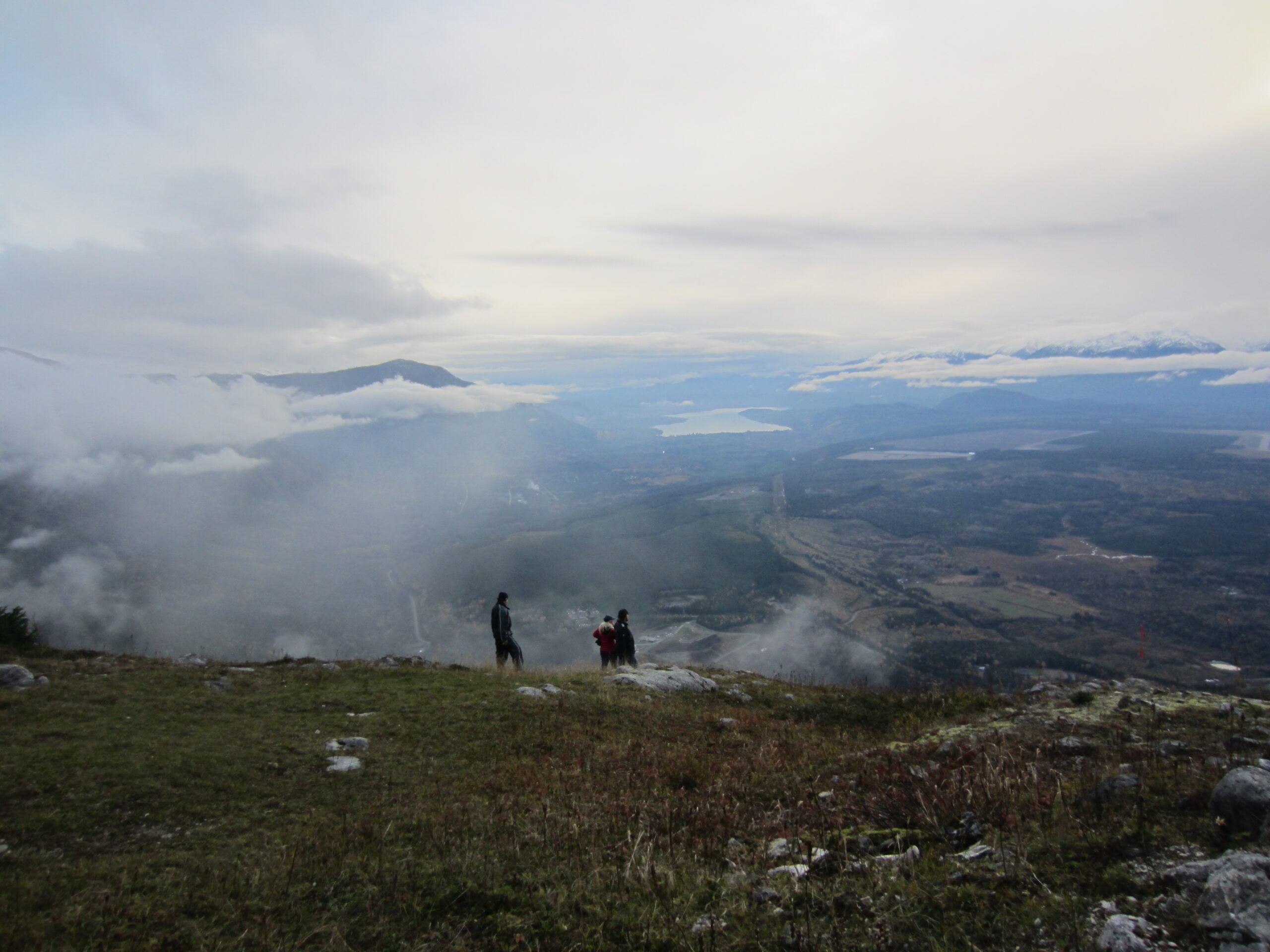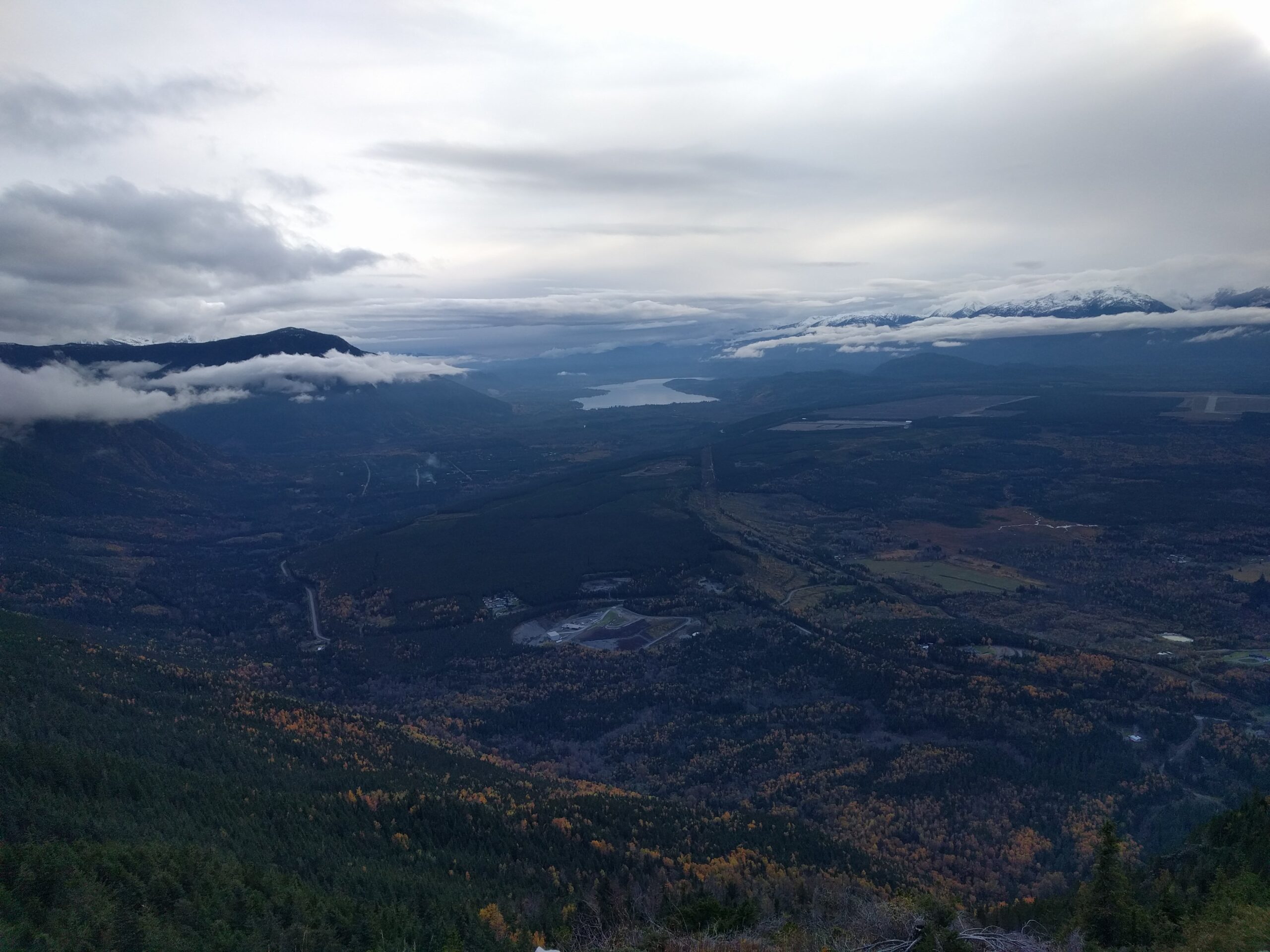 „Your favourite“ lachte mein Enkelkind, und damit war klar: eine erneute Tour mit den SXS. Thornhill Mountain war das Ziel. Zwischen schroff aufragenden und auf der anderen Seite ebenso steil abfallenden Felswänden ging die Fahrt auf rauen Schotterwegen bergaufwärts. Äußerste Vorsicht war geboten, denn es galt große Felsbrocken, Washouts, enge Serpentinen, große Schlaglöcher sowie exponierte Baumwurzeln zu überwinden. Als wir die Schneegrenze passiert hatten, konnten wir manche Steigungen nur nach mehrmaligen Anläufen und dann im Slalom meistern. Schnee stiebte von allen Seiten auf uns ein. Wir befanden uns buchstäblich in einem weißen Inferno. Völlig mit Schnee überschüttet kroch ich oben angekommen aus dem SXS, und Blake lachte nur. Ich schaute mich um. Der Himmel öffnete sich. Ein Panoramablick ermöglichte kilometerweite Sicht in alle Richtungen: das gesamte Skeena Valley mit seinen bunten Wäldern, Terrace und der Lakelse Lake lagen unter uns. Die schwache Wintersonne beleuchtete die gesamte Szenerie. Unglaublich schöne Wolkenformationen zogen darüber hinweg. Alle Bäume, Büsche, Felsen und sogar die Fernmeldetürme auf der Spitze des Thornhill Mountain waren bizarr dick mit gefrorenem Schnee überzogen. Wir kamen aus dem Staunen nicht heraus.