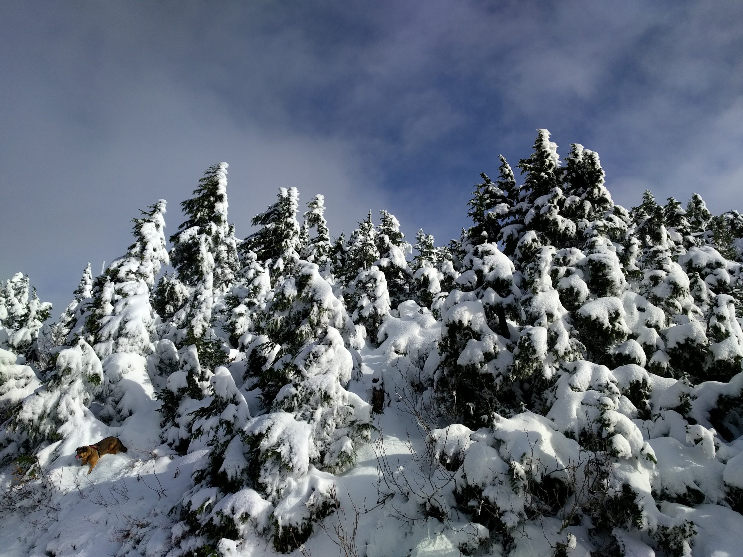 „Your favorite“ laughed my grandchild, and that made it clear: another tour with the SXS. Thornhill Mountain was the destination. The ride went uphill on rough gravel roads between steep rock faces and equally steep rock faces on the other side. Extreme caution was required as we had to negotiate large boulders, washouts, narrow switchbacks, large potholes and exposed tree roots. Once we had passed the snow line, we could only master some inclines after several attempts and then in a slalom. Snow was pouring down on us from all sides. We were literally in a white inferno. Completely covered in snow, I crawled out of the SXS at the top, and Blake just laughed. I looked around. The sky was opening up. A panoramic view provided miles of visibility in all directions: the entire Skeena Valley with its colorful forests, Terrace and Lakelse Lake lay below us. The weak winter sun illuminated the entire scenery. Incredibly beautiful cloud formations passed over it. All the trees, bushes, rocks and even the telecommunication towers on top of Thornhill Mountain were bizarrely thick with frozen snow. We couldn’t get out of our amazement.