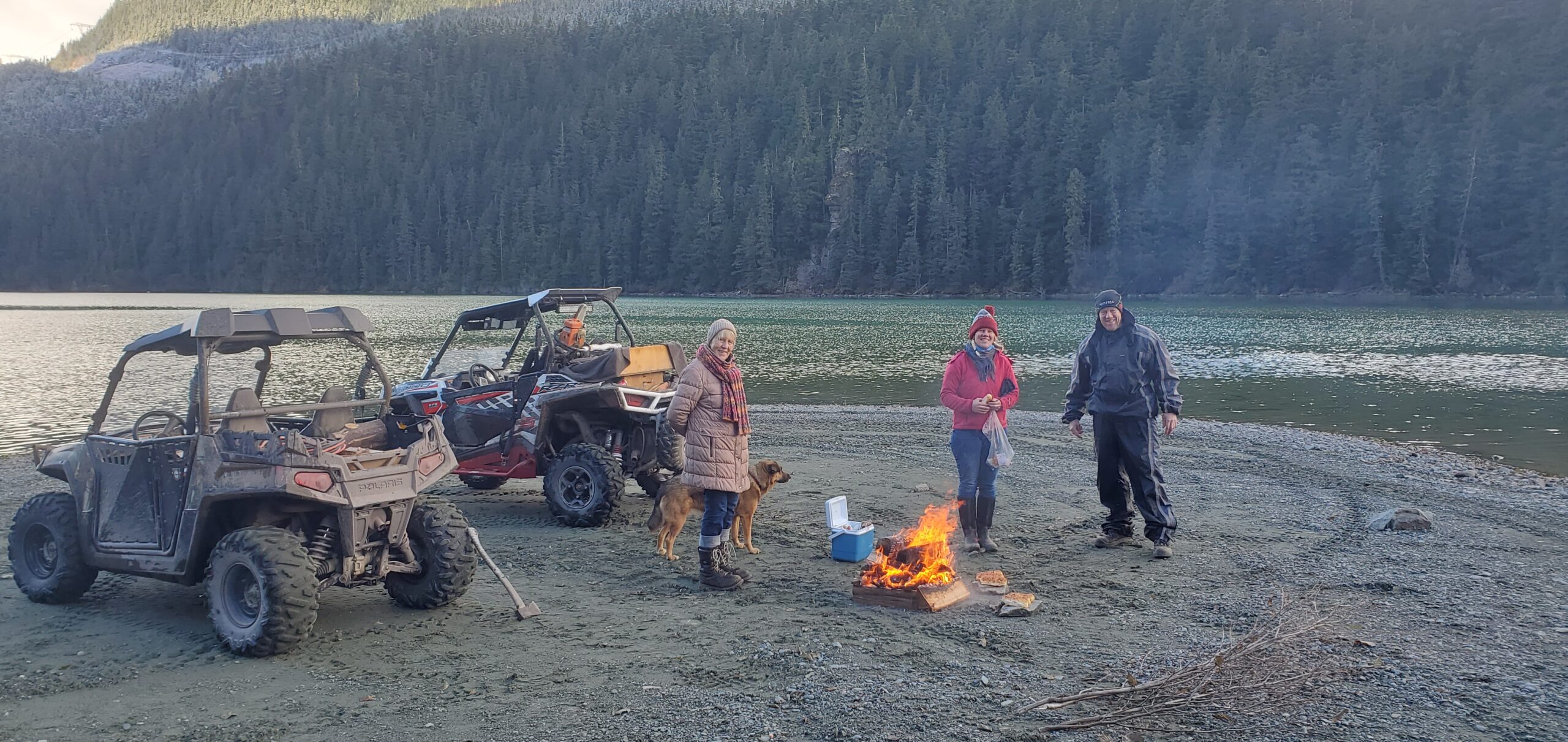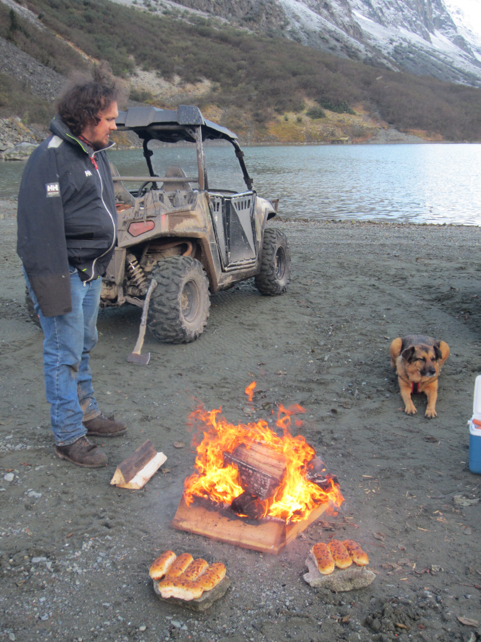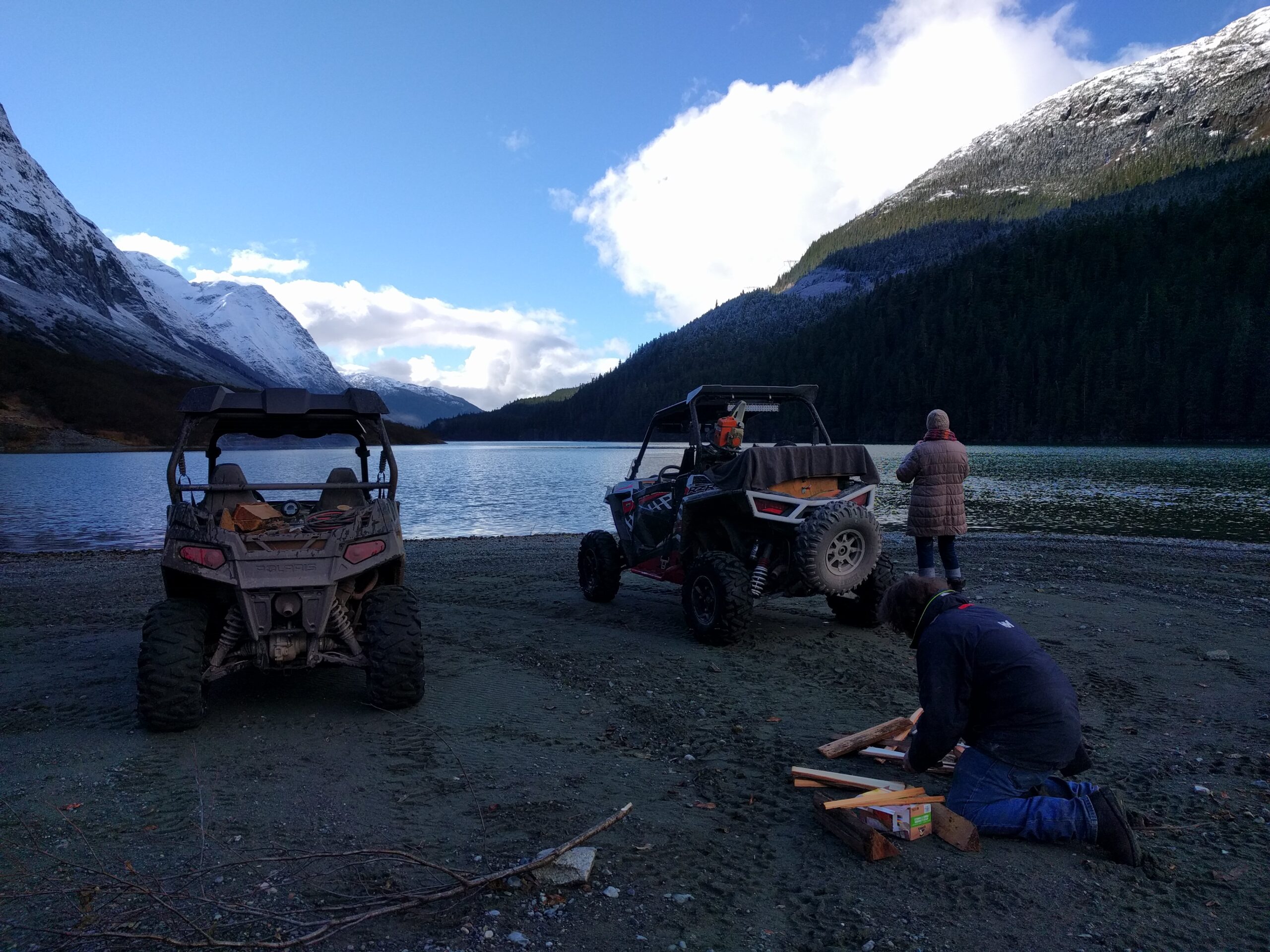 Ich war auf alles gefasst und sollte nicht enttäuscht werden. Morgens wieder das übliche Verladen der beiden SXS. Zusätzlich wurde jede Menge Holz verstaut, und Lea packte eine große Picknicktasche. „Heute fahren wir den Telkwa Pass“, verkündete Blake stolz, und seine Augen blitzten vor Unternehmungslust. Die Anfahrt mit dem Truck bis zum eigentlich Beginn des Passes war unspektakulär. Unterwegs hatten wir Gelegenheit, in einem Areal von Schieferfelsbrocken und -geröll nach Fossilien zu suchen. Wir wurden sogar fündig. Ich konnte mehrere in Stein eingebettete Muscheln als Souvenir mitnehmen.