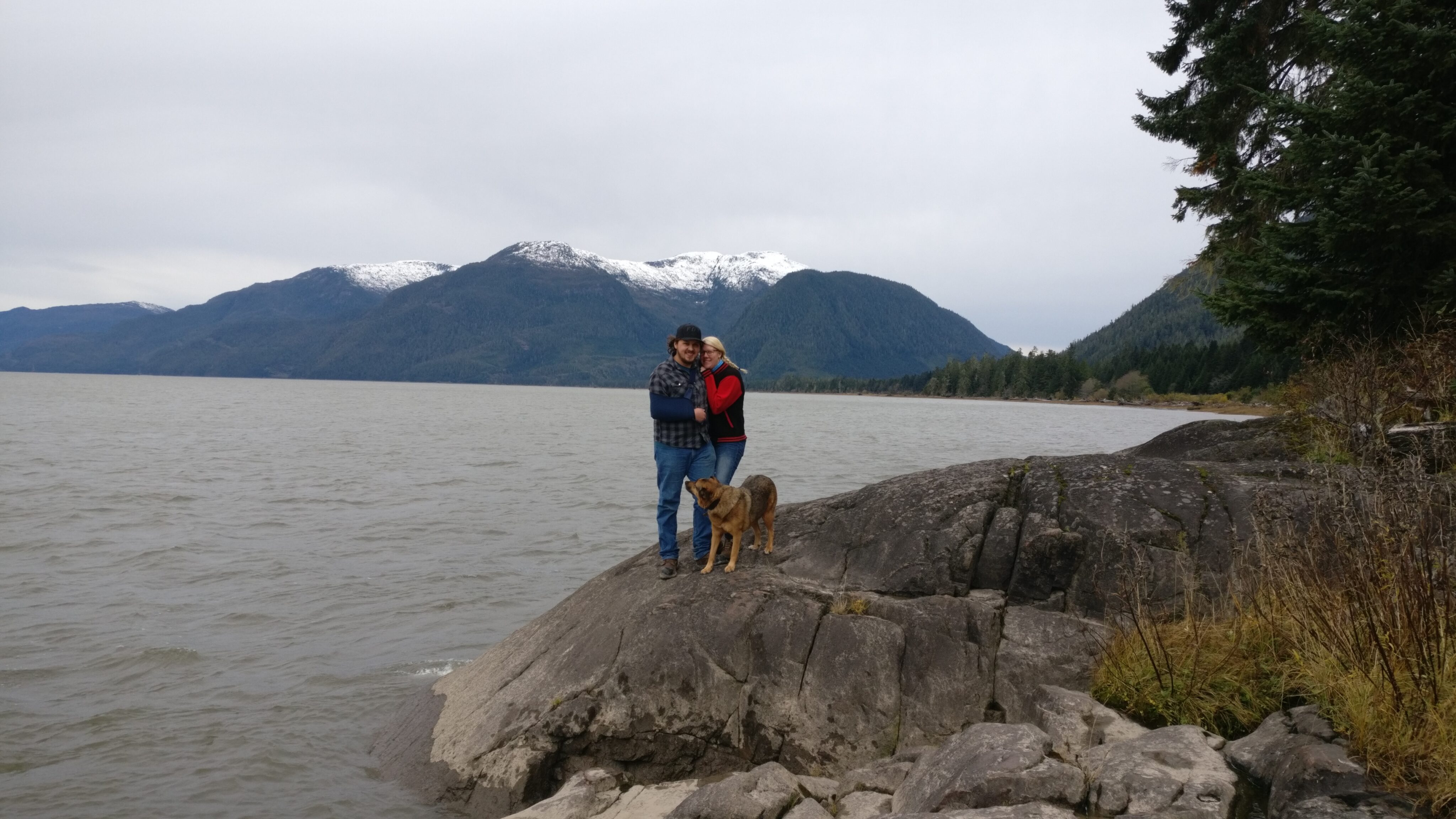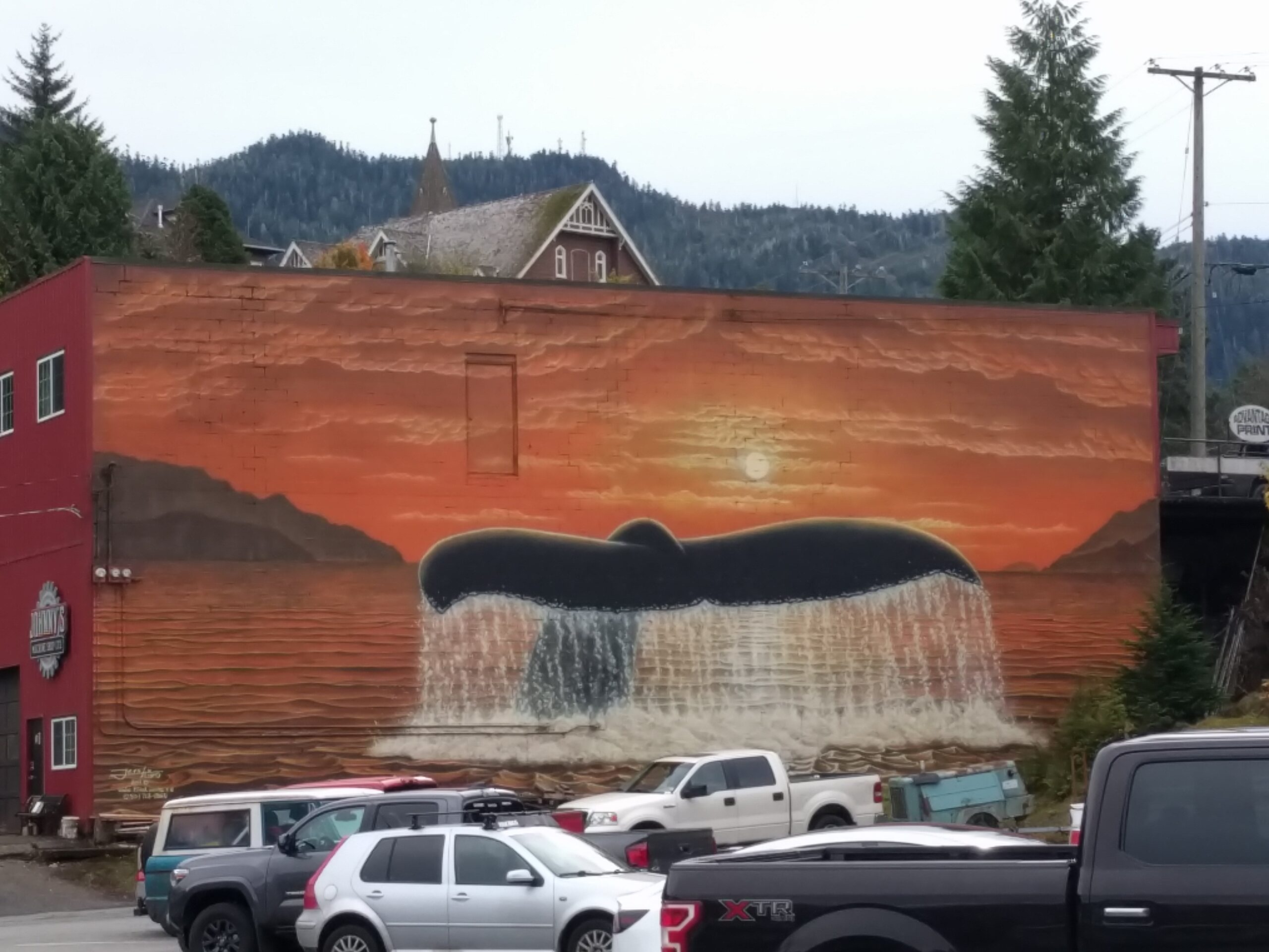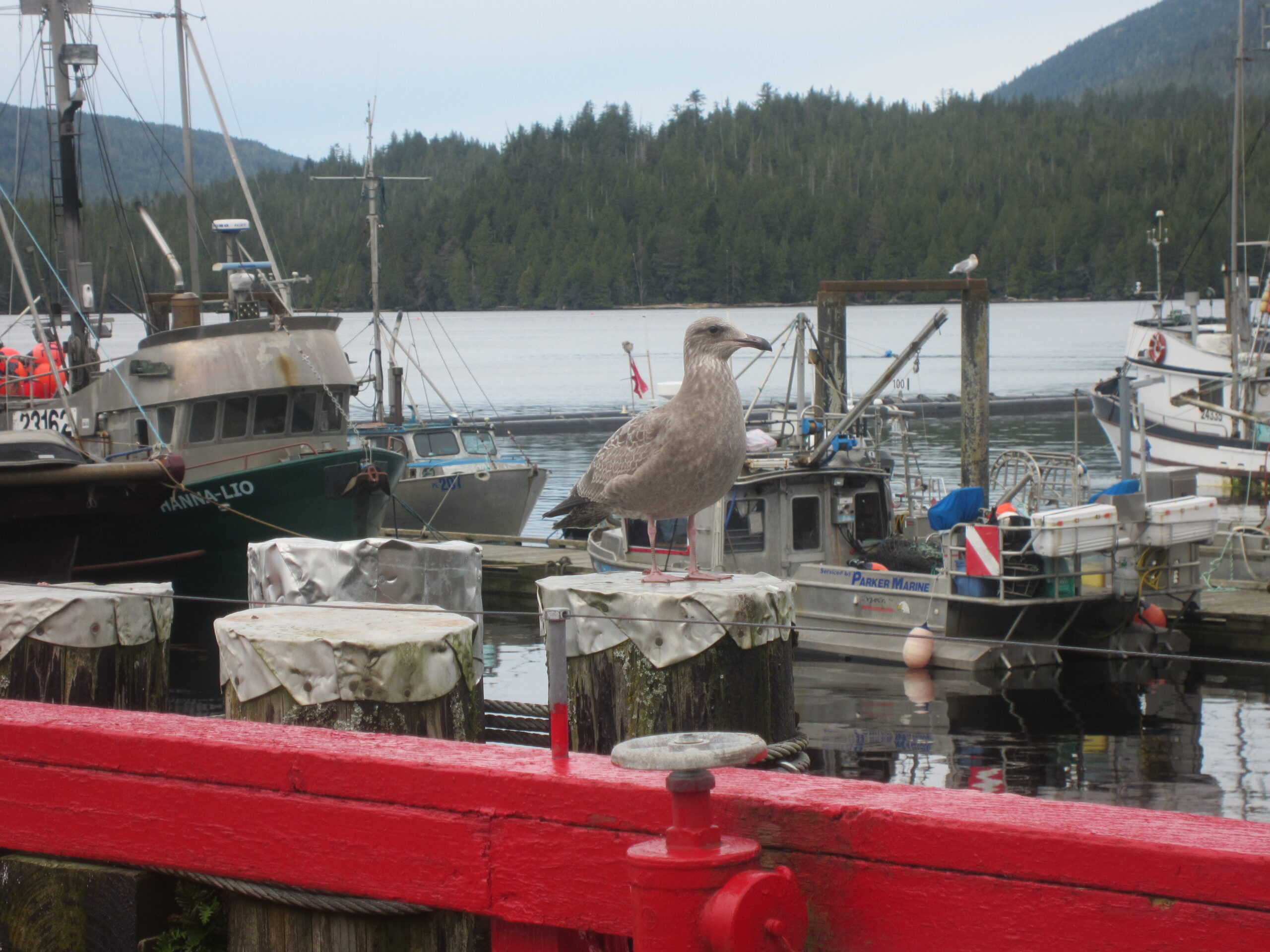 Heute nun wollten sie uns Prince Rupert zeigen, eine Kleinstadt auf Kaien Island direkt an der Nordpazifikküste. Eine lange Fahrt war es dahin, gut 140 km. Wir wanderten umher und entdeckten wiederum Spuren der Ureinwohner in Form von kunstvoll geschnitzten und bunt bemalten Totempfählen. Cow Bay, eine malerische, historische Hafenanlage in knalligem Rot mit kleinen Lädchen, Galerien, Cafés und Restaurants hatte es uns besonders angetan. Im besten Fischrestaurant „Dolly‘s“ kauften wir leckere Mahlzeiten und wanderten ein Stück am Wasser entlang, bis wir einen geeigneten Platz fanden, an dem wir schmausen konnten.