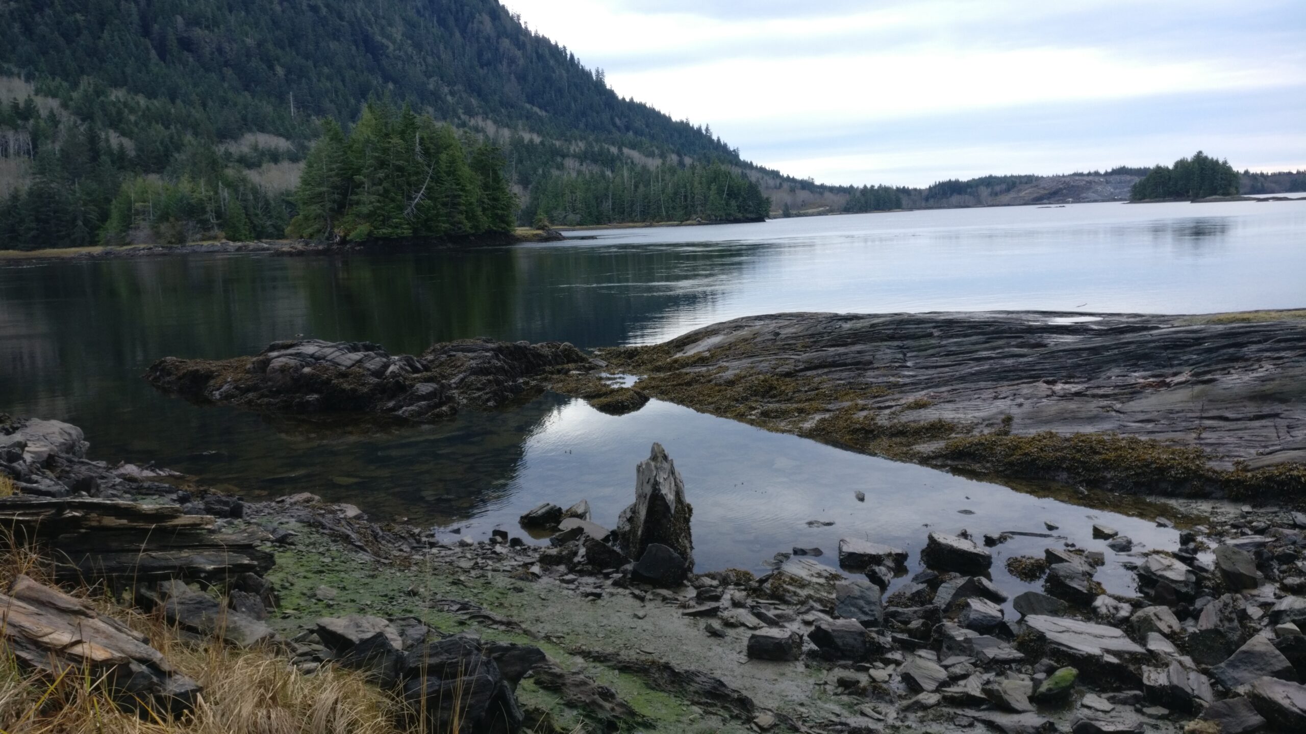 Heute nun wollten sie uns Prince Rupert zeigen, eine Kleinstadt auf Kaien Island direkt an der Nordpazifikküste. Eine lange Fahrt war es dahin, gut 140 km. Wir wanderten umher und entdeckten wiederum Spuren der Ureinwohner in Form von kunstvoll geschnitzten und bunt bemalten Totempfählen. Cow Bay, eine malerische, historische Hafenanlage in knalligem Rot mit kleinen Lädchen, Galerien, Cafés und Restaurants hatte es uns besonders angetan. Im besten Fischrestaurant „Dolly‘s“ kauften wir leckere Mahlzeiten und wanderten ein Stück am Wasser entlang, bis wir einen geeigneten Platz fanden, an dem wir schmausen konnten.
