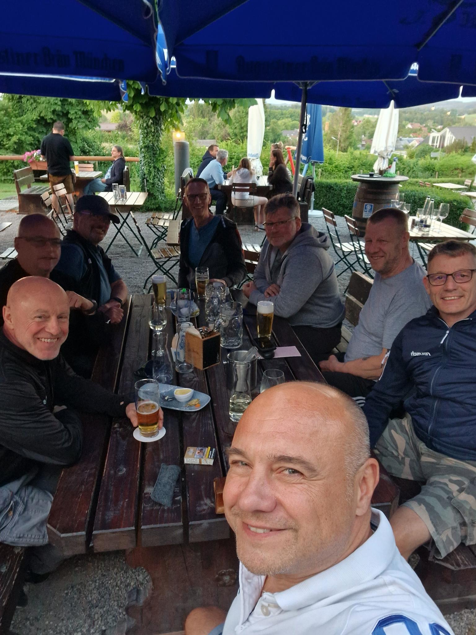 Es war ein langer Tag, ca. 8,5 Stunden für die Anreise aus Maintal. Stefan P. haben wir unterwegs aufgegabelt, die andere Hälfte der Mannschaft kam aus der fränkischen Schweiz. Das Wetter war wieder mal prima, zum Glück nicht mehr ganz so warm wie gestern. Und die südliche Hälfte Deutschlands hat einfach mehr Kurven!