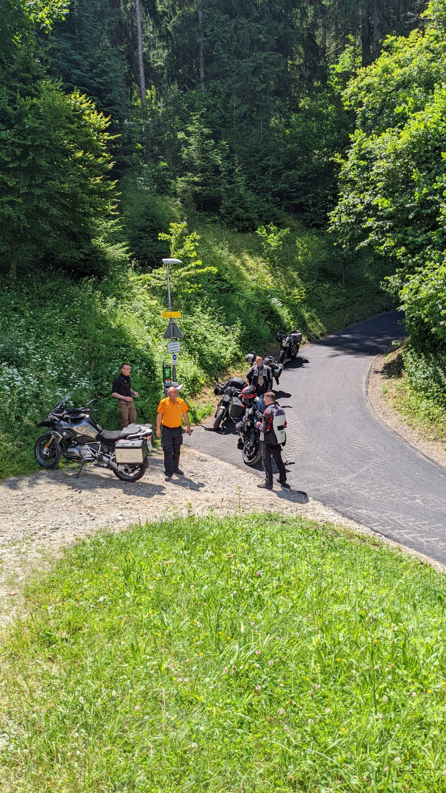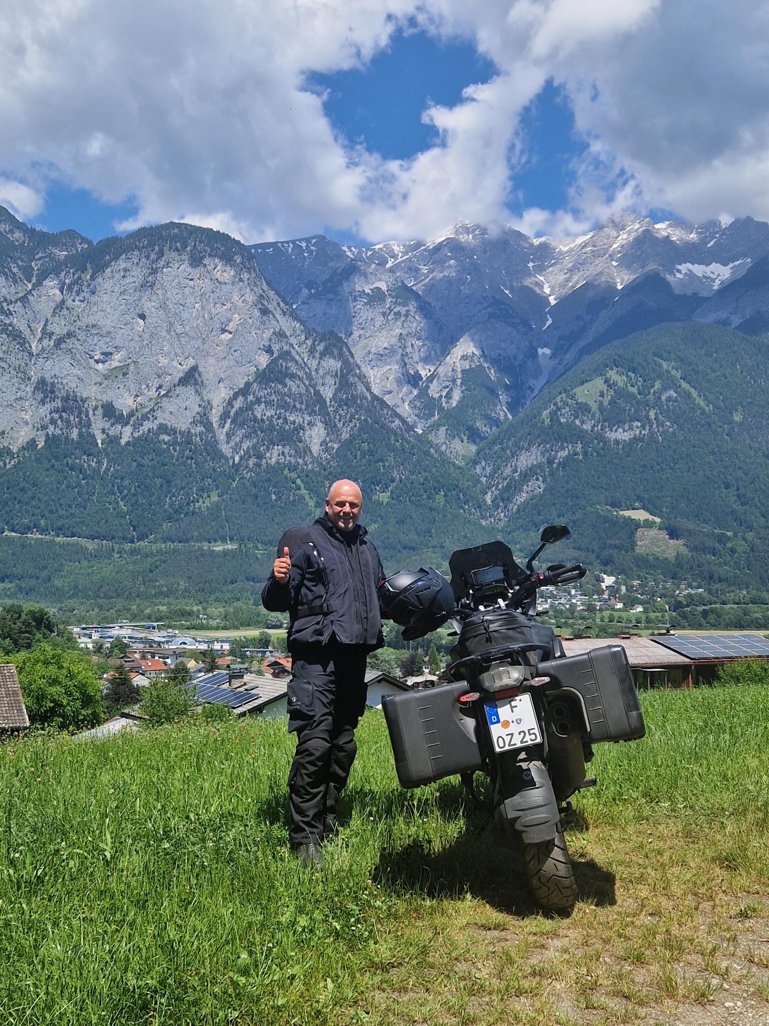 Das Basislager in Natz ist erreicht. Achim hat heute morgen um 9:45 Uhr wieder die Führung übernommen und uns über eine sehr schöne Tour hierher geführt. Es war für jeden Geschmack etwas dabei: Kleine und kleinste Straßen, die ehemalige Bergrennstrecke zwischen Kochel- und Walchensee oder schöne, weitgeschwungene Kurven. Es hat viel Spaß gemacht bei bestem Wetter.