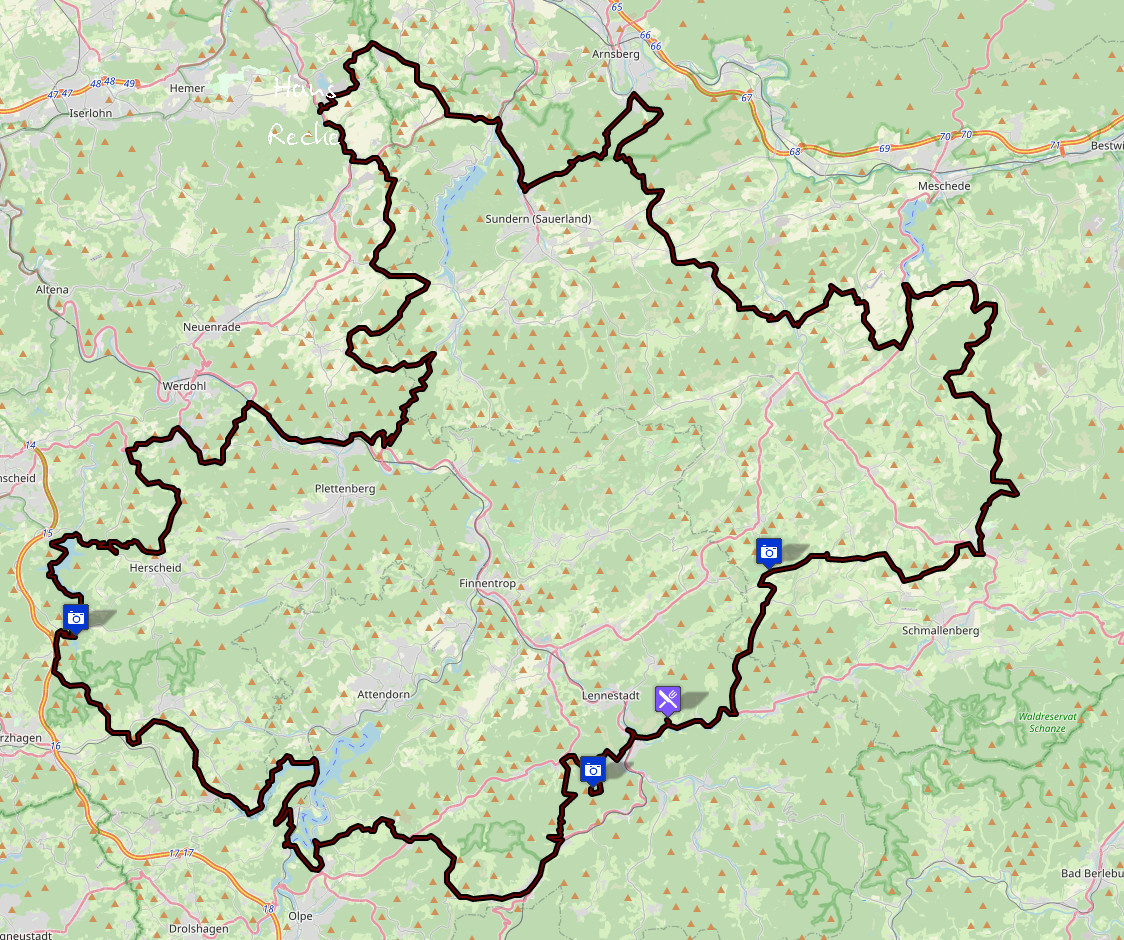 Es ging ganz entspannt und ohne Zeitdruck Richtung Süden, es war wenig los auf den Straßen. Bei 31° hatten sich die meisten wohl ans Wasser oder in den Schatten verzogen. Ich ließ die Z900 einfach laufen, machte ab und an eine kurze Pause und kam gegen viertel nach 5 im Sauerland an.