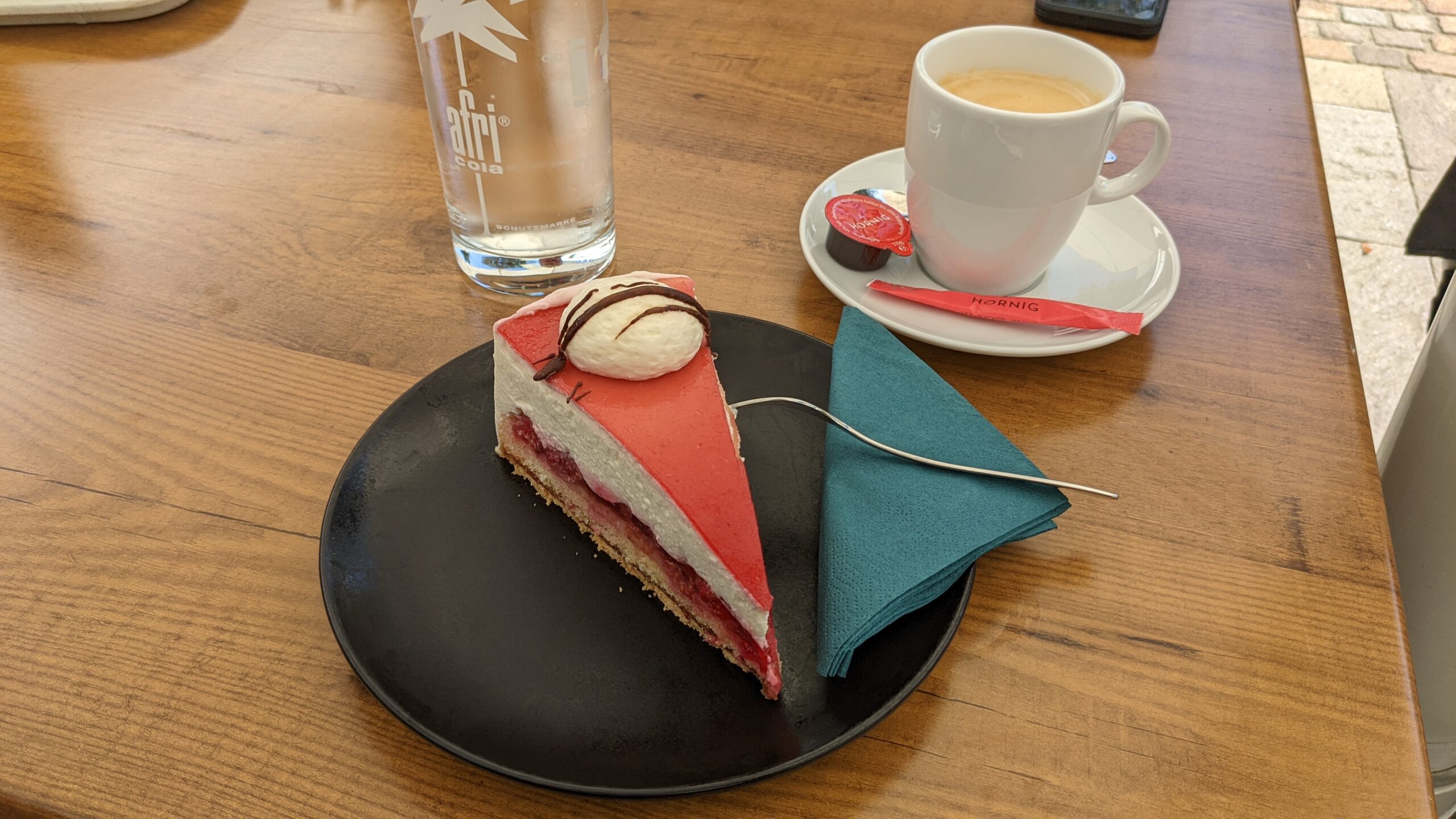 Dann stiegen 3 junge Frauen aus einem weißen BMW. Alle gut geschminkt, dafür aber in Sweatshirts und Jogginghosen mit passenden Flip-Flops, eben sehr bequem. Sie rauschten direkt in den Toilettenraum. Ich aß in Ruhe mein Eis, trank meine Apfelschorle, checkte nochmal das Handy… Aber die Mädels kamen nicht wieder raus. Irgendwann entschloß ich mich, weiter zu fahren. Gerade als ich den Helm aufgesetzt hatte, öffnete sich die Tür und die Frauen kamen in rauschenden Ballkleidern auf High-Heels wieder zum Vorschein. Es sollte wohl zu einer Hochzeit gehen… Nächstes Mal bin ich schlauer…