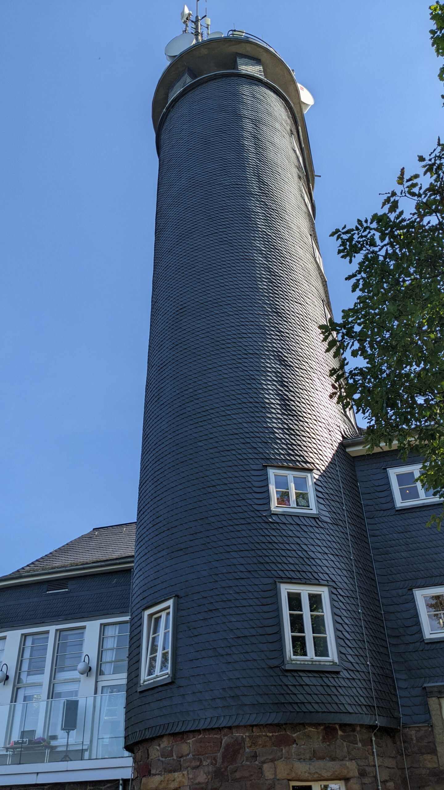 Auf halber Strecke kehrten wir am Aussichtsturm ‚Hohe Bracht‘ ein, um uns ein wenig zu stärken. Bei schönem Wetter am Wochenende ist hier sonst immer ‚der Bär los‘, aber heute hatten sich nur wenige auf die Beine gemacht. Die Quecksilbersäule war auch schon wieder über 30°geklettert, viele Menschen blieben da wohl lieber in der Nähe vom Wasser, die Strände an den Stauseen waren jedenfalls gut besucht. Uns konnte das nur Recht sein.