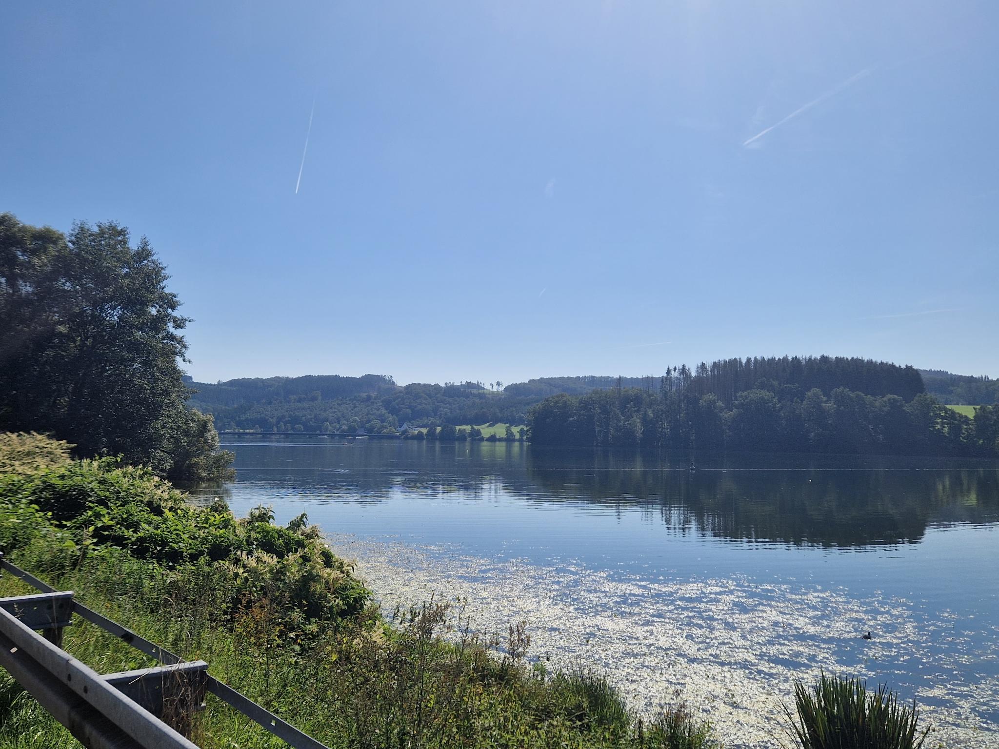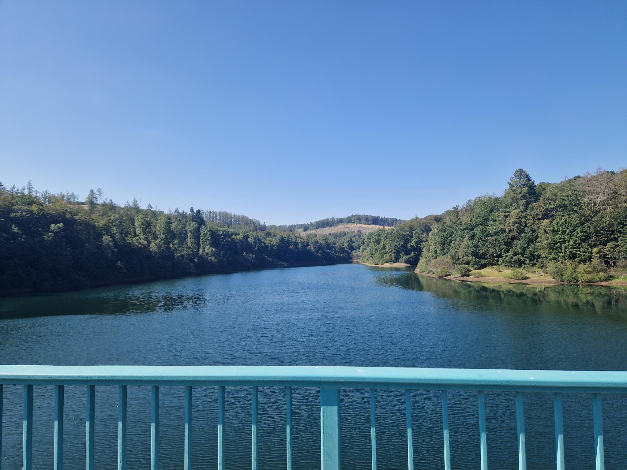 Weiter ging es, rauf und runter, dem Ufer der Stauseen folgend. Dann auf einem der Staudämme übers Wasser und wieder hinein in das nächste, kühle Waldstück. Den Berg hinauf und in engen Windungen wieder herunter.