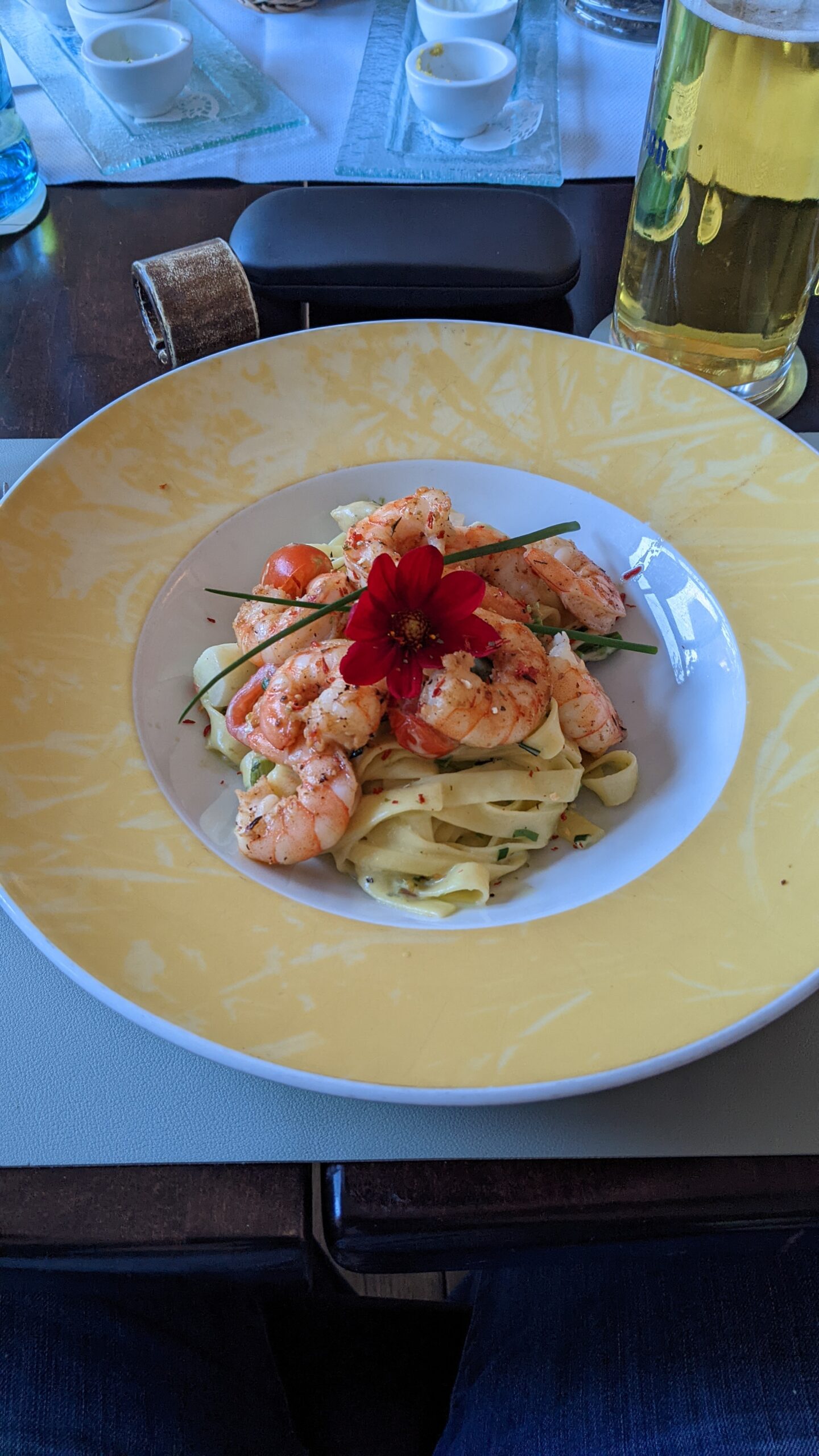 Unser Nach-Tour-Bier nahmen wir auf der Terrasse im Sonnenschein ein und das Abendessen war, wie schon an den anderen Tagen, wieder ein echtes Highlight.