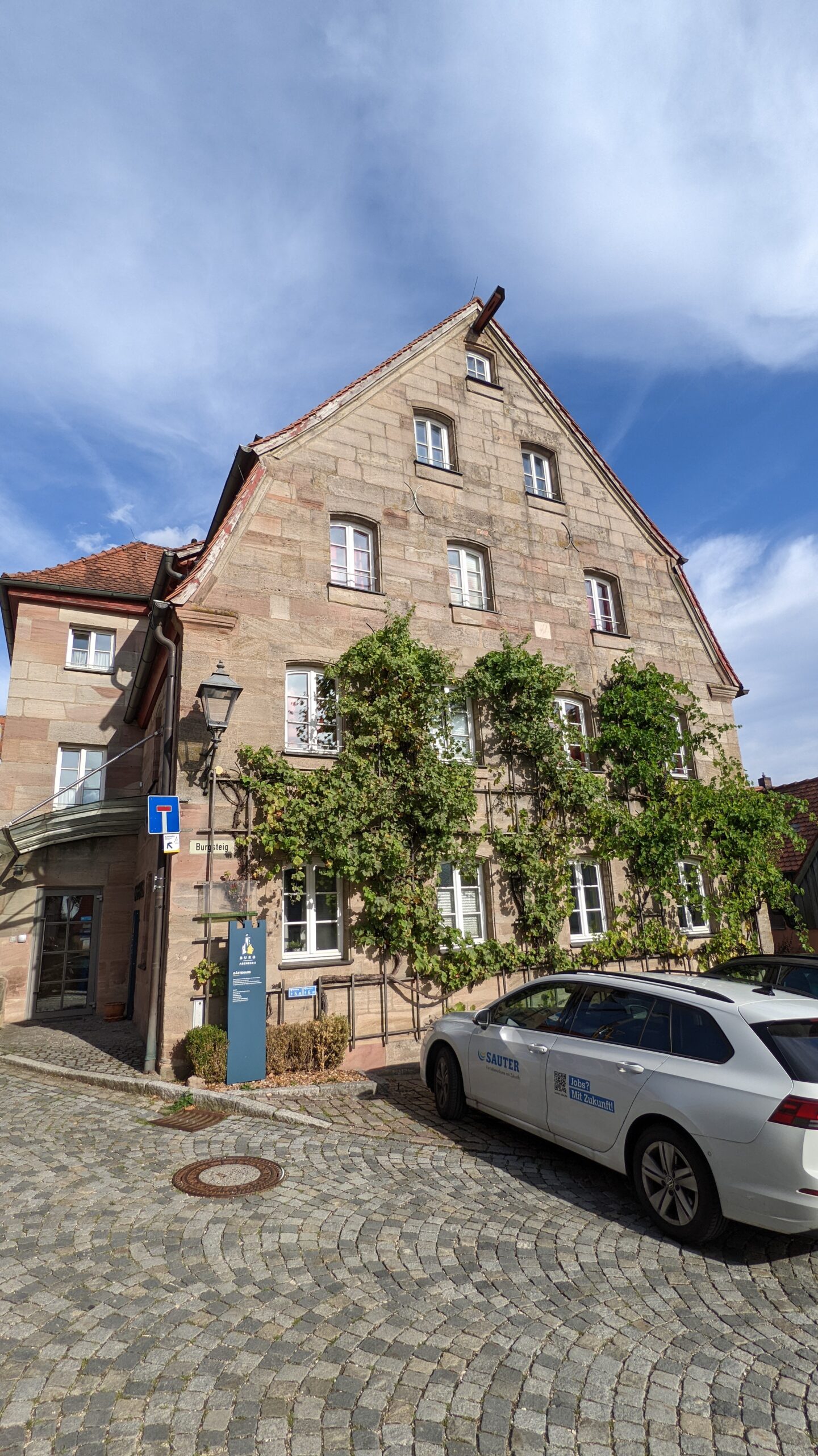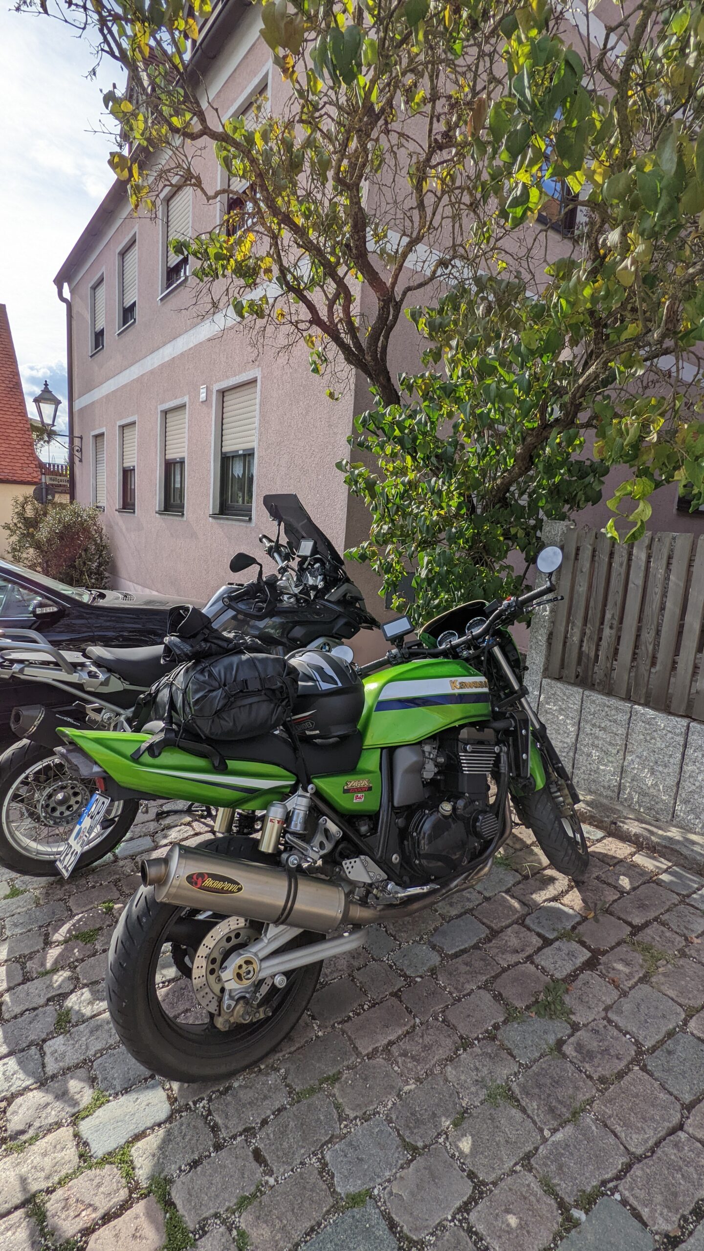 Irgendjemand hatte es sich aber in den Kopf gesetzt, meine Ankunft in Abenberg zu sabotieren. Die erste Straßensperrung brachte mir ca. 15 km Umweg ein. Tja, das kann schon mal passieren, dachte ich mir. Nach weiteren 3 Sperrungen und etlichen Kilometern mit Umleitungen fand ich das dann nicht mehr ganz so lustig. Es war nämlich mittlerweile ziemlich warm geworden und die kalkulierte Ankunftszeit auf dem Navi verschob sich ständig weiter nach hinten. Die Umleitungen brachten mich allerdings auch von den breiten Bundesstraßen auf kleine, kurvige Nebenstrecken, somit beschloß ich das positiv zu sehen: Ich komme vielleicht etwas später an, habe dafür aber mehr Fahrspaß. Mit diesem kleinen Psychotrick war auch die gute Laune wieder mit an Bord! Letztendlich kam ich dann nach etwas mehr als 7 Stunden Fahrtzeit an der Burg Abenberg an.