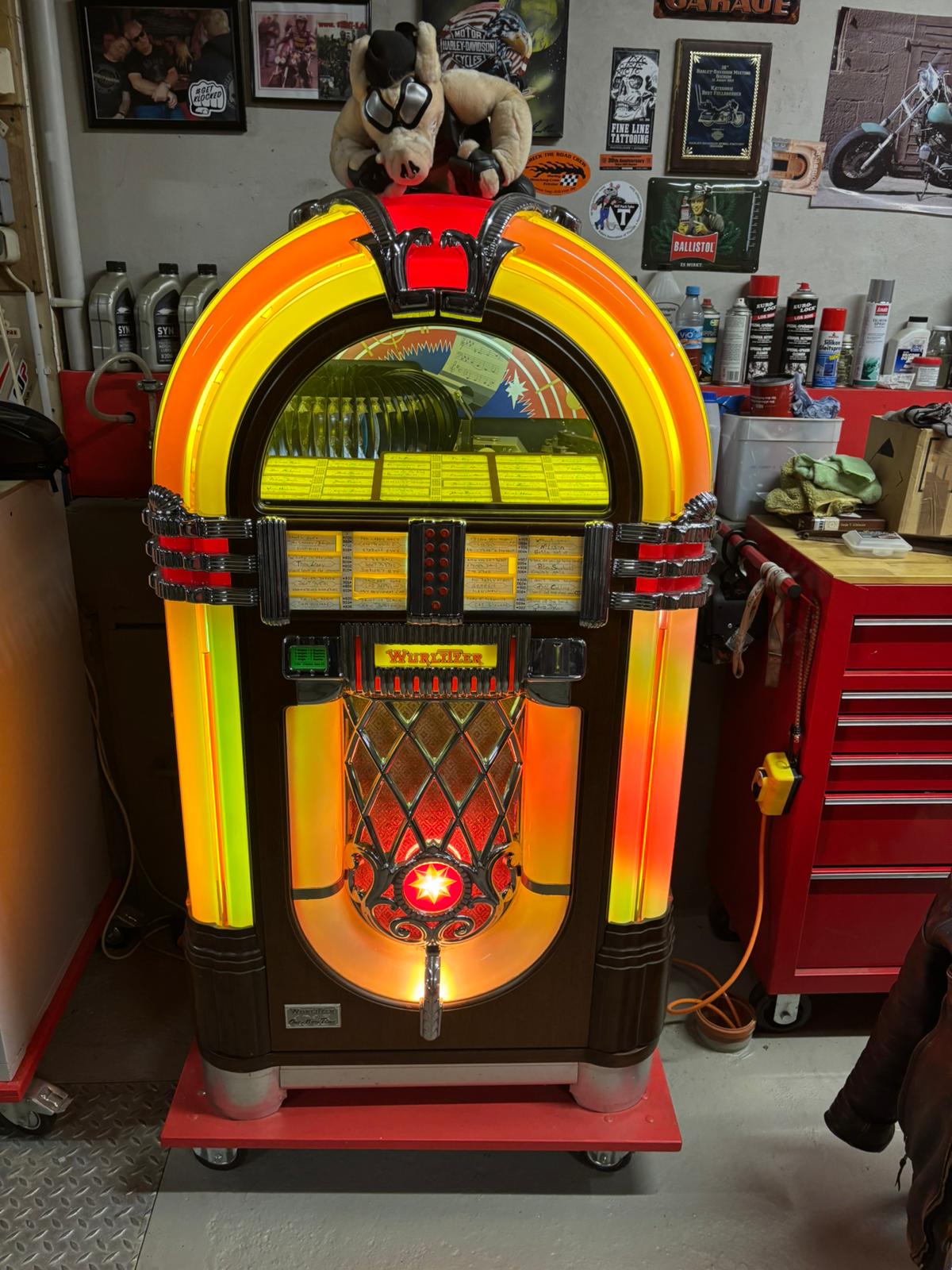 Und auch an diesem Tage begann der gemütliche Teil des Tages mit einer verheißungsvollen Menükarte. Bei gutem Essen und Trinken ließen wir den Tag Revue passieren. Rechtzeitig zum Essen kam dann noch unser 14. Mitfahrer dazu. Dann ab ins Bett, morgen wartet eine neue Tour! Ein paar Unentwegte zog es noch in Uli’s Whisky- und Zigarrenlongue und zum Abschluß musste noch die sehenswerte Werkstatt mit Jukebox und so einigen anderen Schätzchen bestaunt werden.