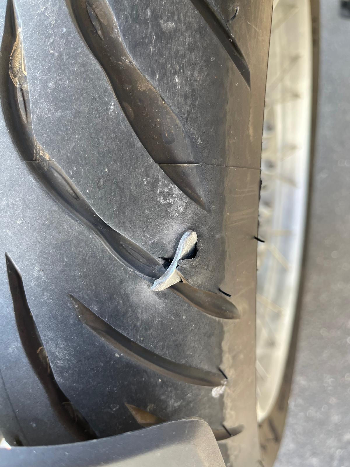 Wie gewohnt, musste ich am gestrigen Abend mein Navi beim Uli abgeben und bekam es heute beim Frühstück mit dem Spruch „Das kannste so fahren“ wieder zurück. Wir starteten um 9:30 Uhr zu einer ca. 250 km langen Tour rund um die Sauerländer Stauseen. Das Wetter sah prima aus, ich übernahm die Führung und los ging es nach altbekannter Art auf kleinen Nebenstraßen. Es schien fast, als hätte man die Strecke für uns reserviert, auf weiten Teilen waren wir fast allein unterwegs. Trotz der gemischten Zusammensetzung der Bikes lief es sehr gut, wir blieben meist in der Gruppe zusammen und genossen die Fahrt. Bis zu dem Zeitpunkt, wo alle aus dem Rückspiegel verschwunden waren… Na, kein Ding, passiert schon mal! Rechts ranfahren, kurz warten… Dann tauchte ein Motorrad auf und ich hörte: „Matze hat ’nen Platten!“. Na prima, das hatten wir im Oktober doch schon mal? Also erstmal zurück und geschaut, was Sache ist. Ein ansehnliches Stück Metall hatte sich tief ins Gummi geschnitten, die Luft war raus…