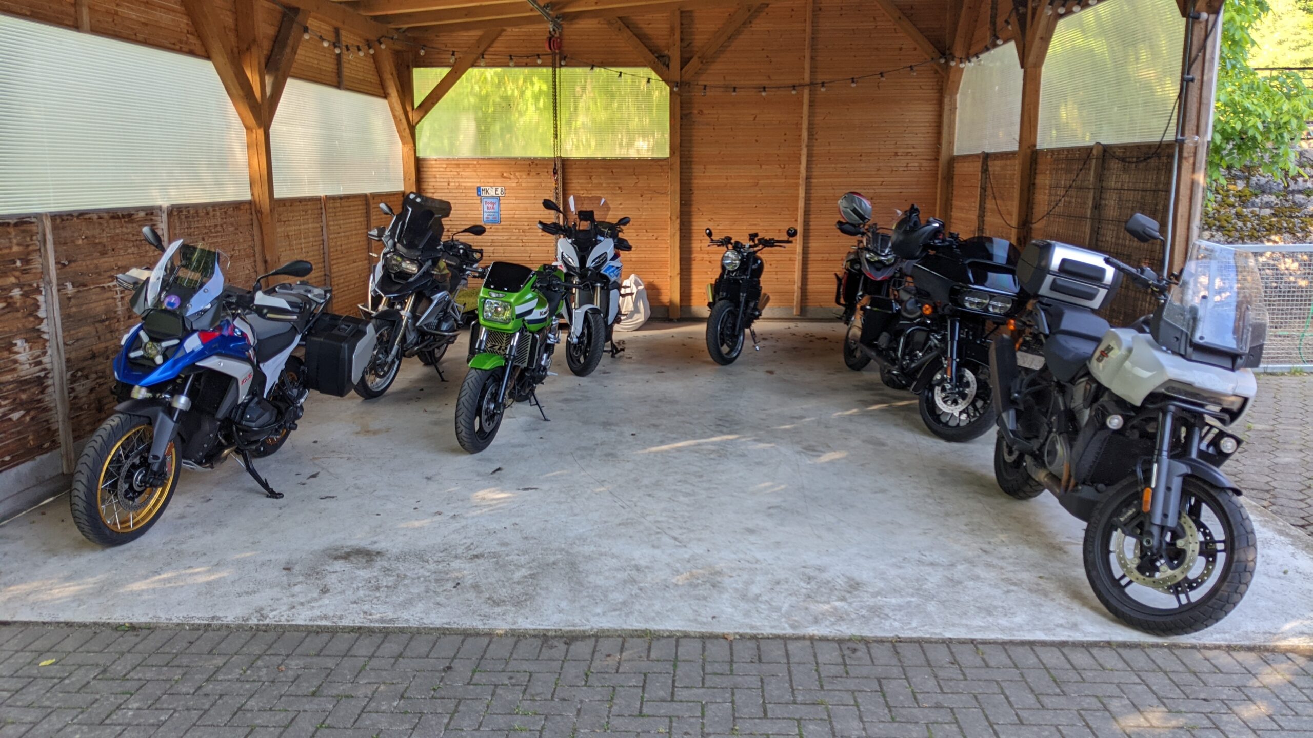 Und wir wurden nicht enttäuscht. Bei angenehmen Temperaturen fuhren wir über kleine und kleinste Nebenstrecken Richtung Süden und landeten gegen 19 Uhr. Wir hatten kaum den Helm vom Kopf genommen, da wurde uns schon das kühle Willkommens-Bier gereicht. So soll das sein!